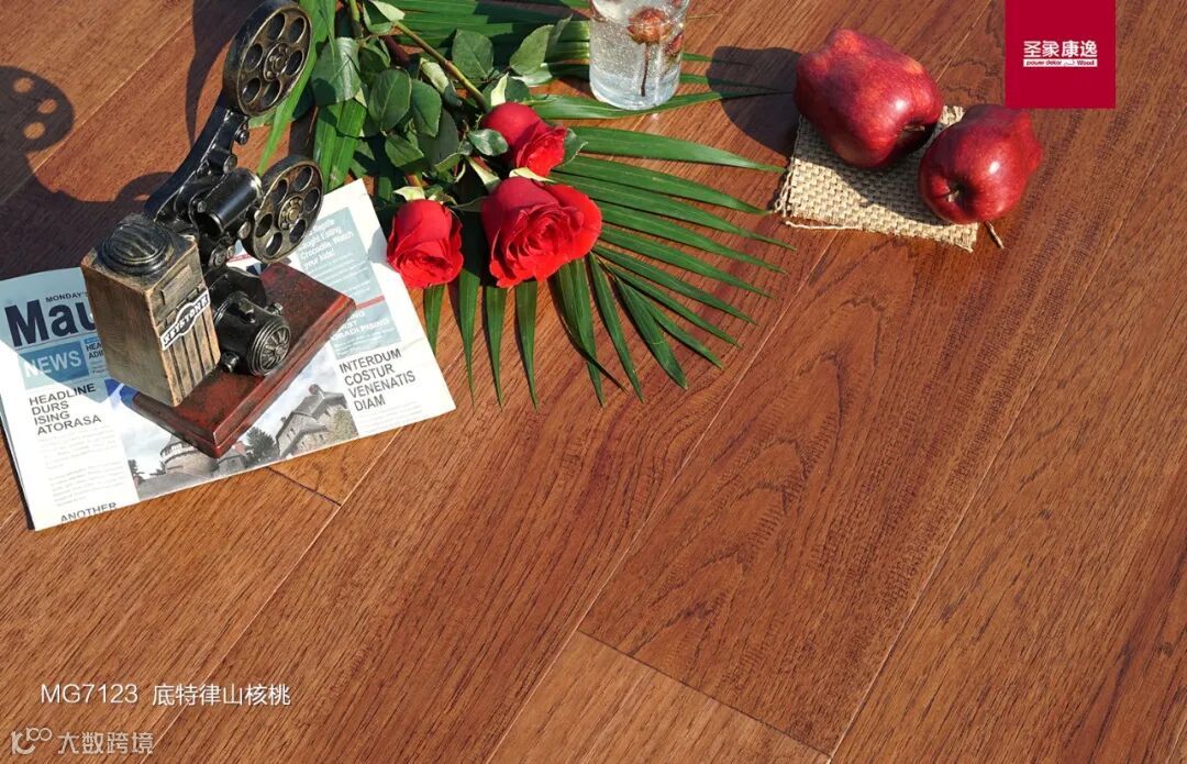 本款产品选用被誉为“北美硬木之王”的山核桃,山核桃木是所有美国硬木中最硬的一种,具有极为耐磨的性能。细密的纹理,坚硬的质地,深邃沉稳的色调,钢琴般润泽的气质,被誉为木材中唯美装饰的“精神”。