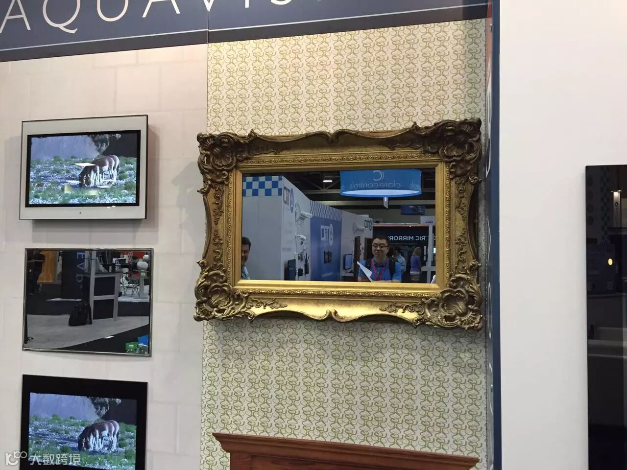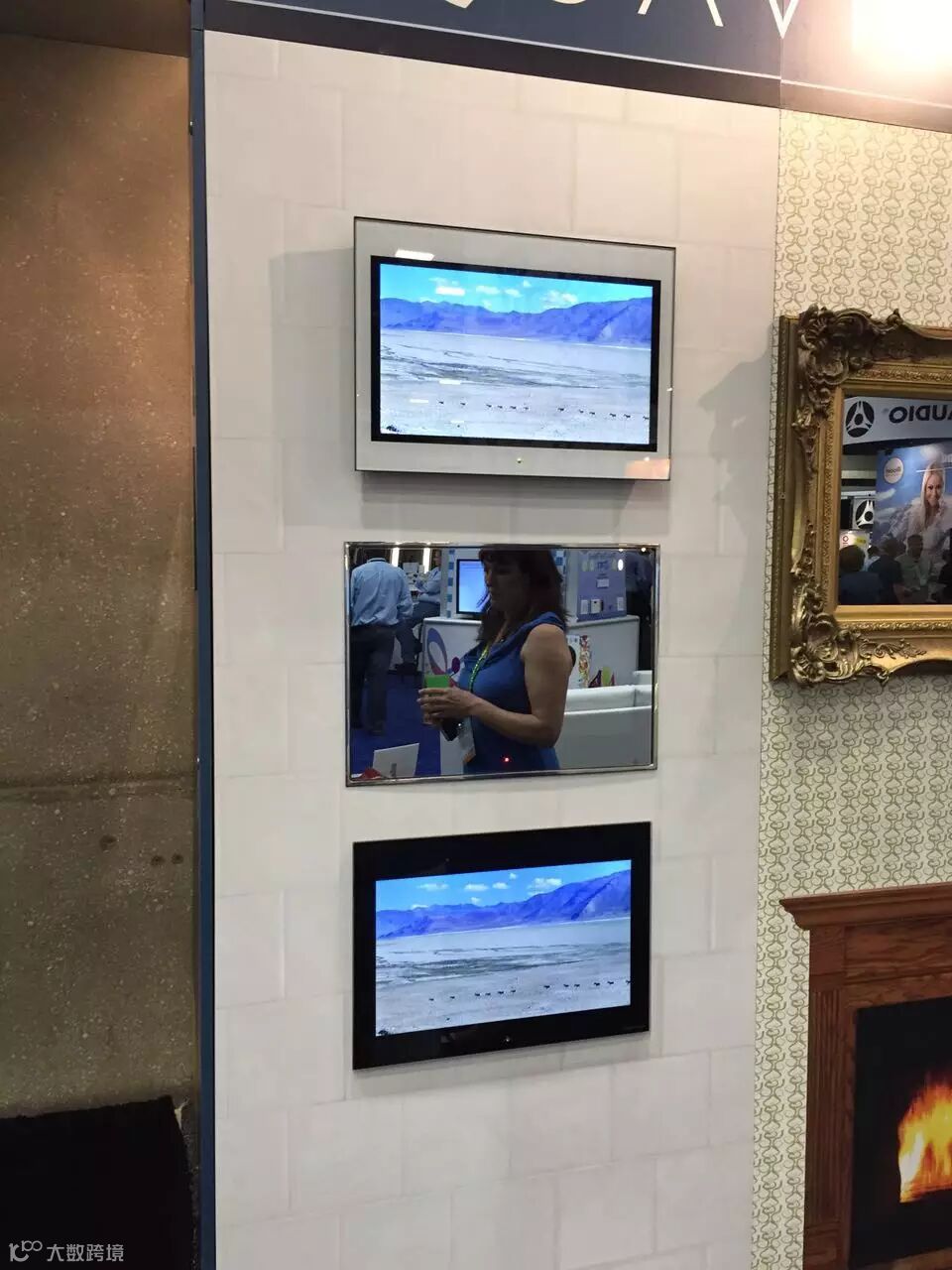这是一款纯镜面的防水电视,隐藏在镜子后面,平时它只是一面镜子,打开后电视就会通过镜子显现出来。