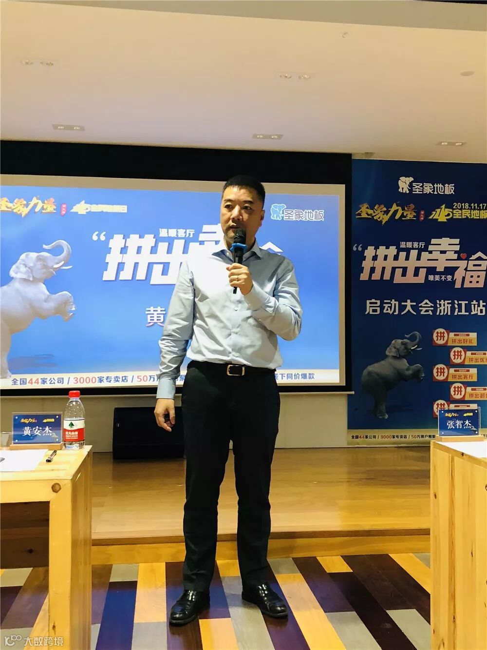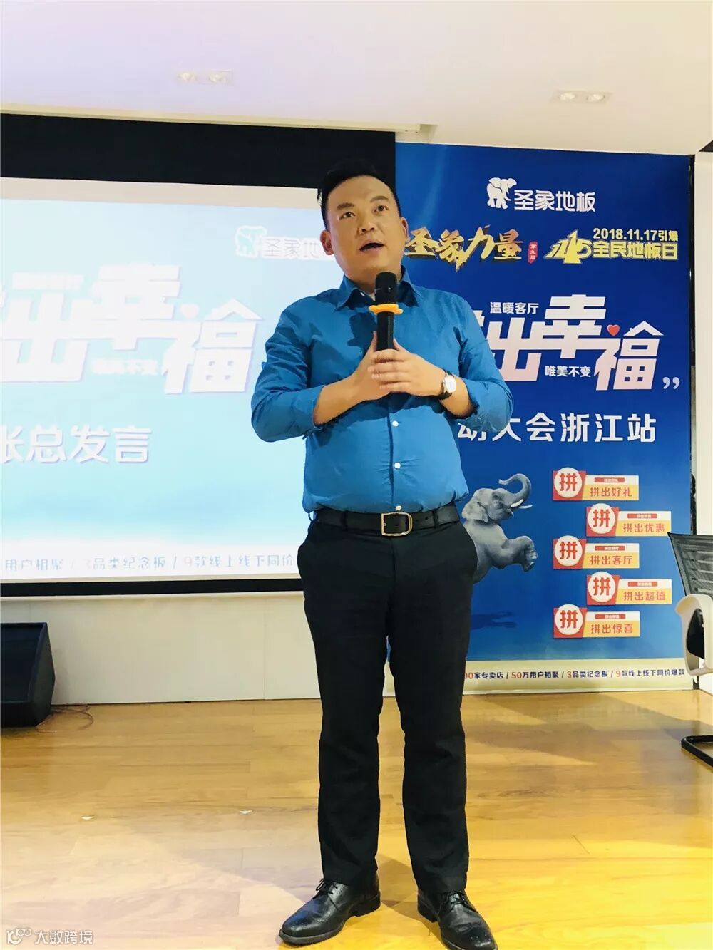 集团康逸事业部大区经理张智杰先生上台发言,鼓励圣象家人们团结起来一起努力,同时也预祝此次11.15活动圆满成功。