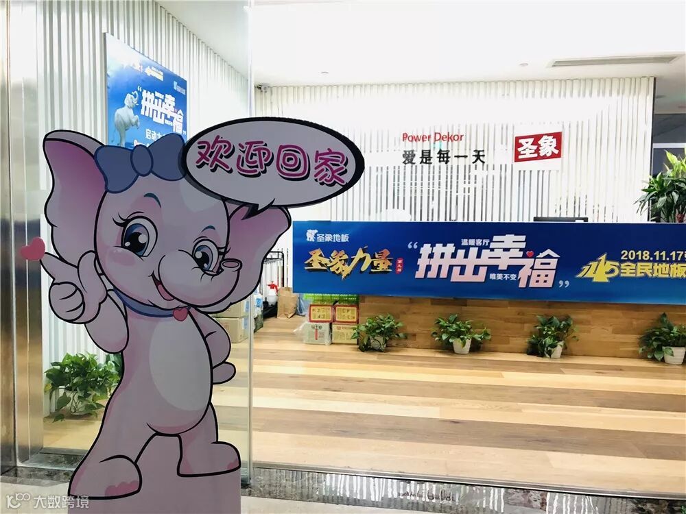 远道而来的圣象家人们一出电梯口,就看到一只萌萌的象小妹,送上“欢迎回家”的暖心话语。