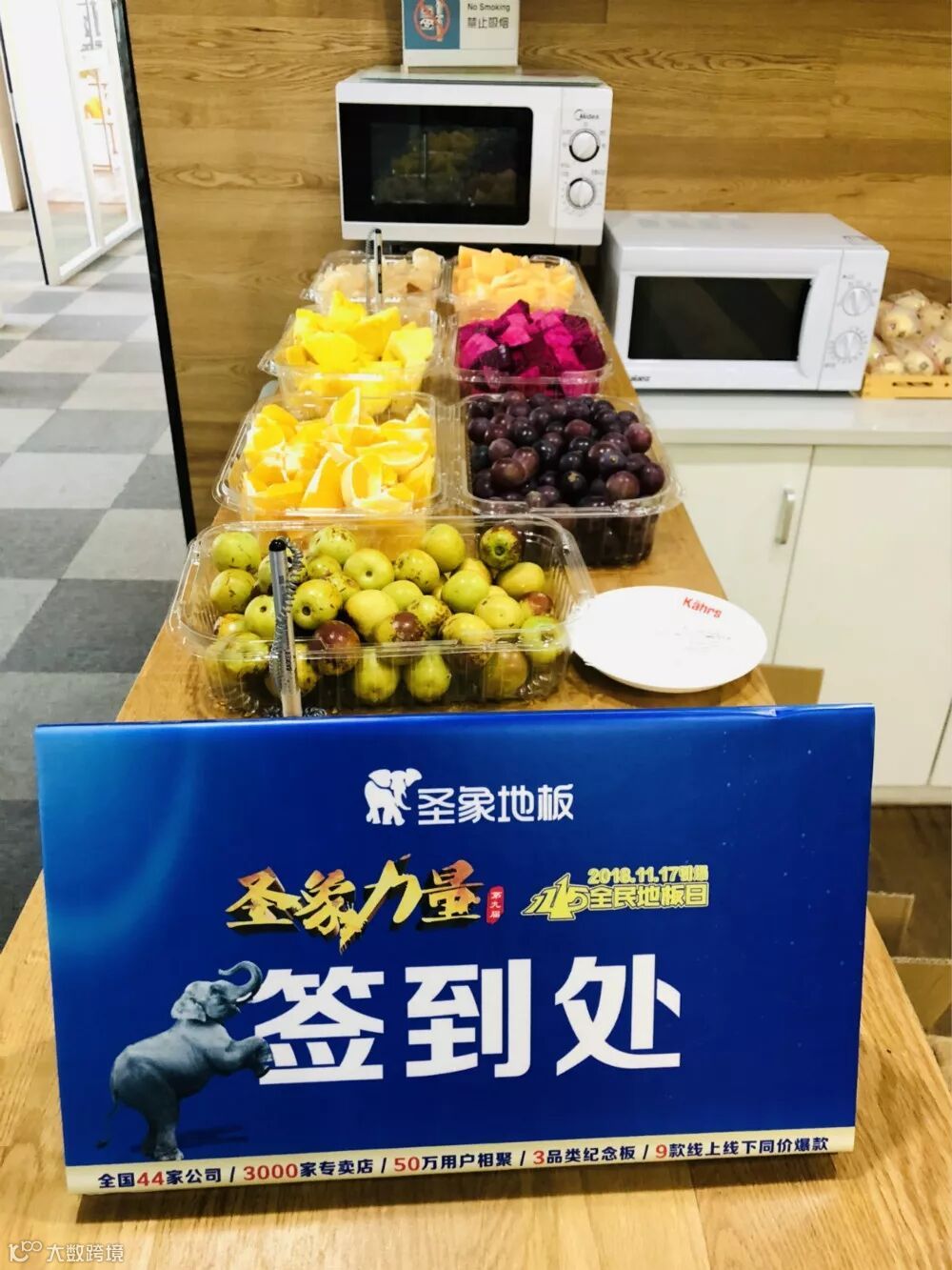 丰盛的水果冷餐及饮料摆在接待台上任君享用。