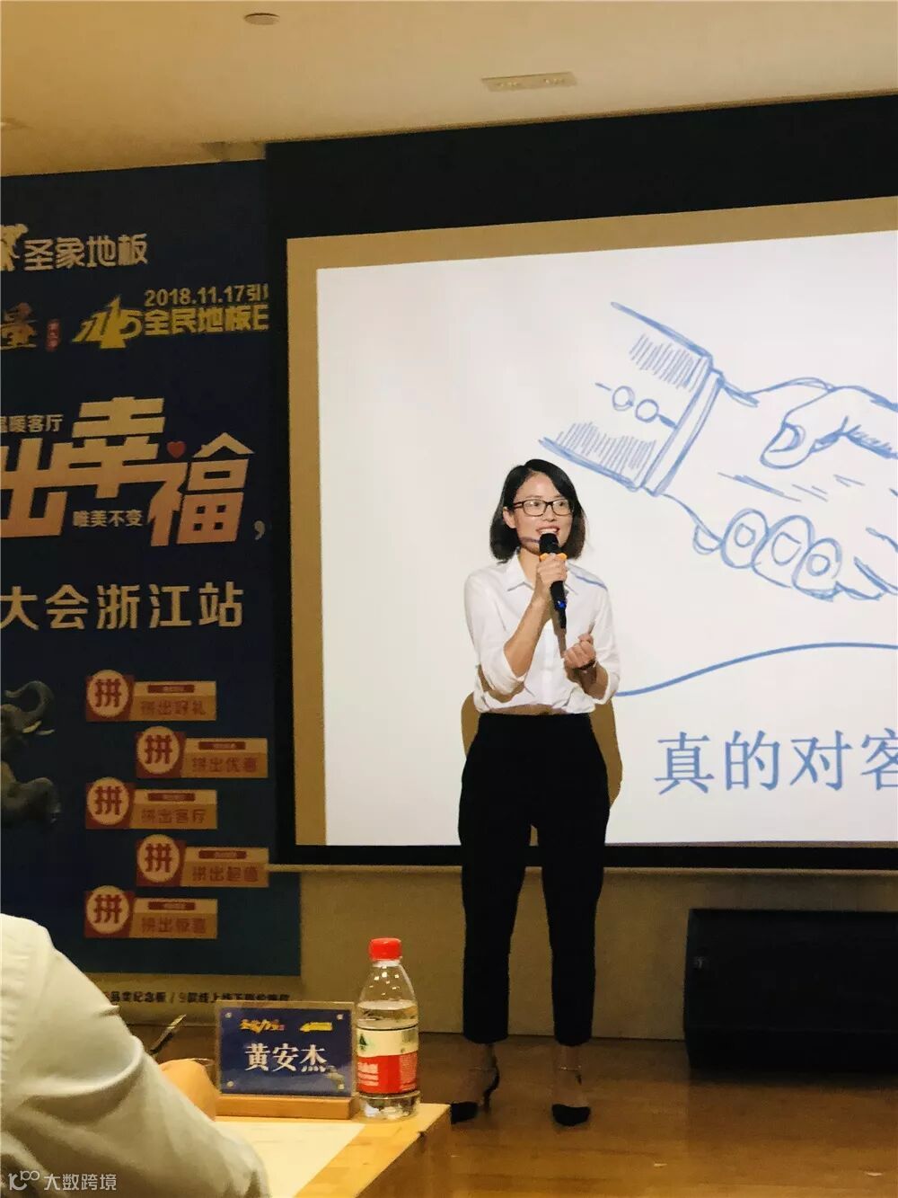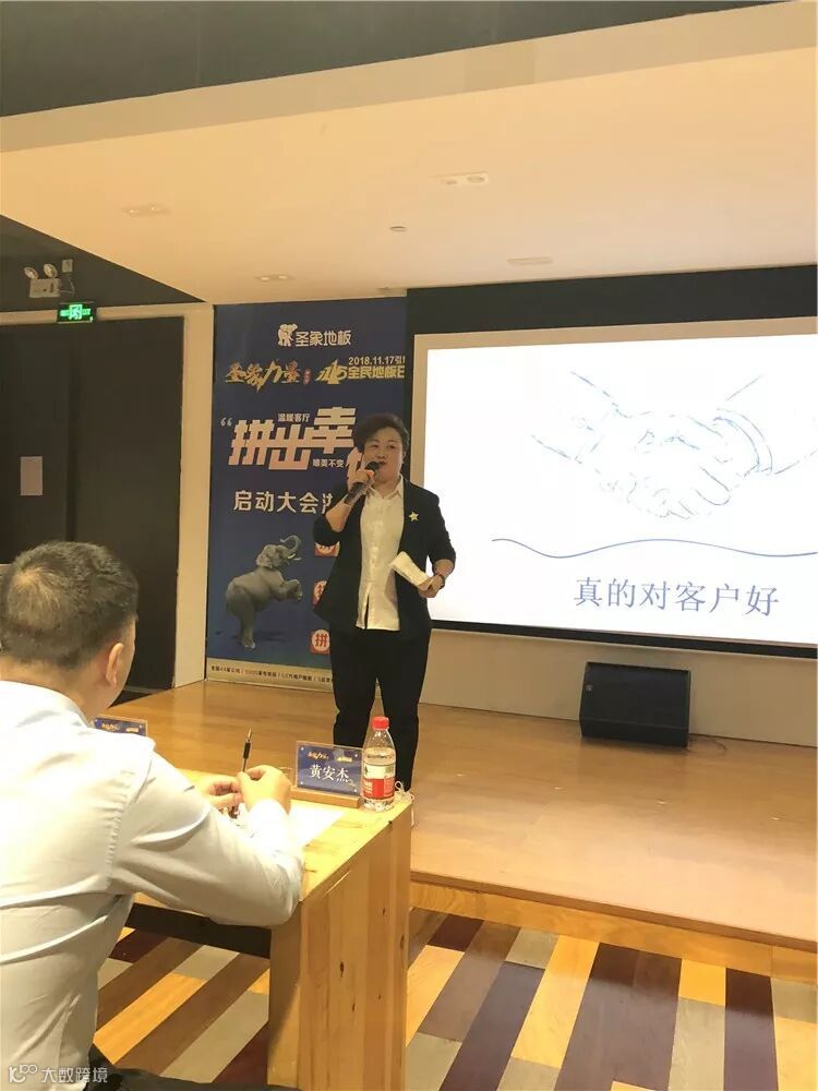 杭州直营部总监裘英超女士上台,进行了题为“真的对顾客好”的经验分享。她邀请了最直接接触客户深谙服务真谛的杭州恒大店店长叶晓琴,以及将服务做到极致的杭州新时代店廖裕敏上台,与在场的圣象家人们进行了客户服务案例的分享。