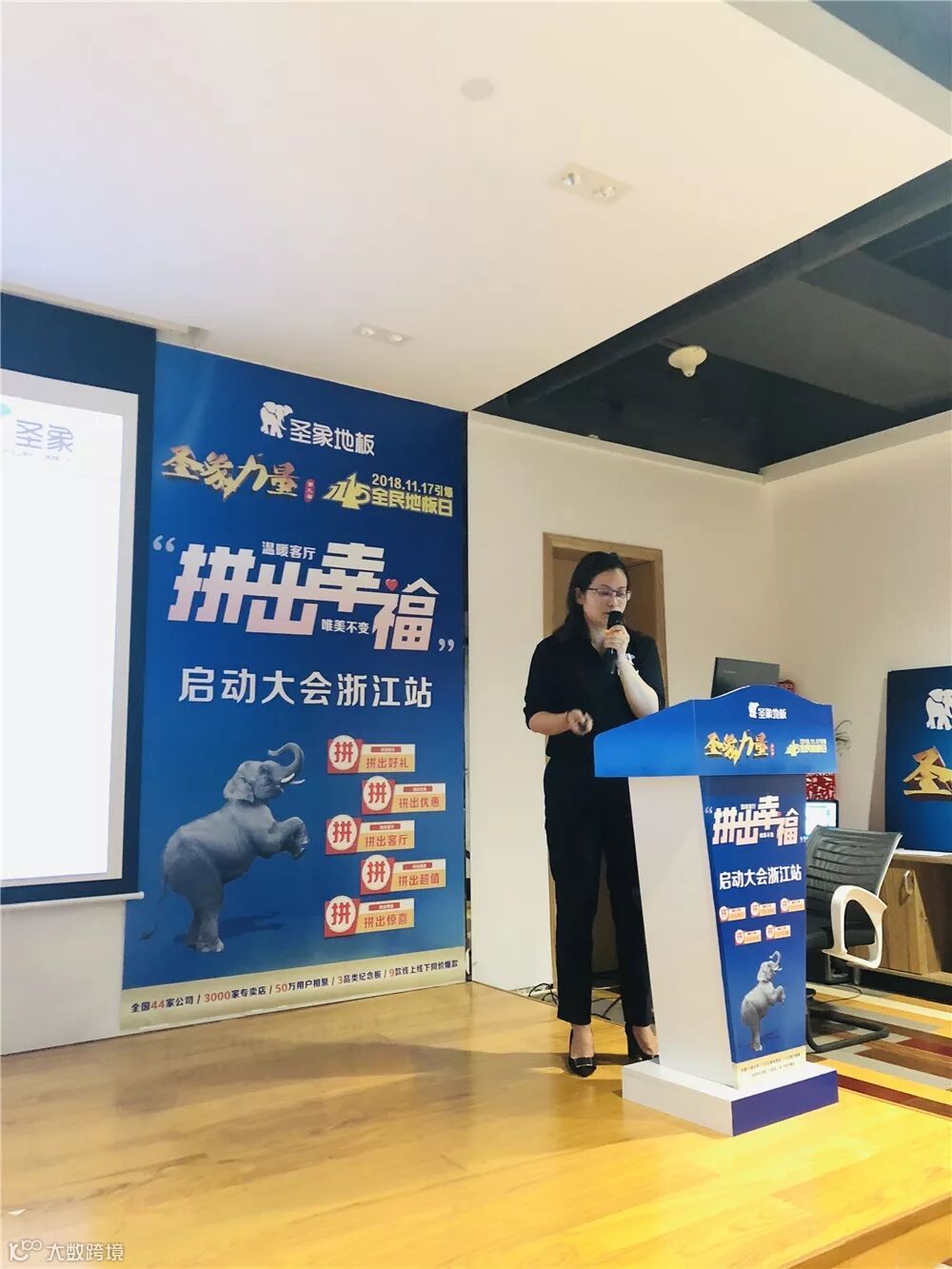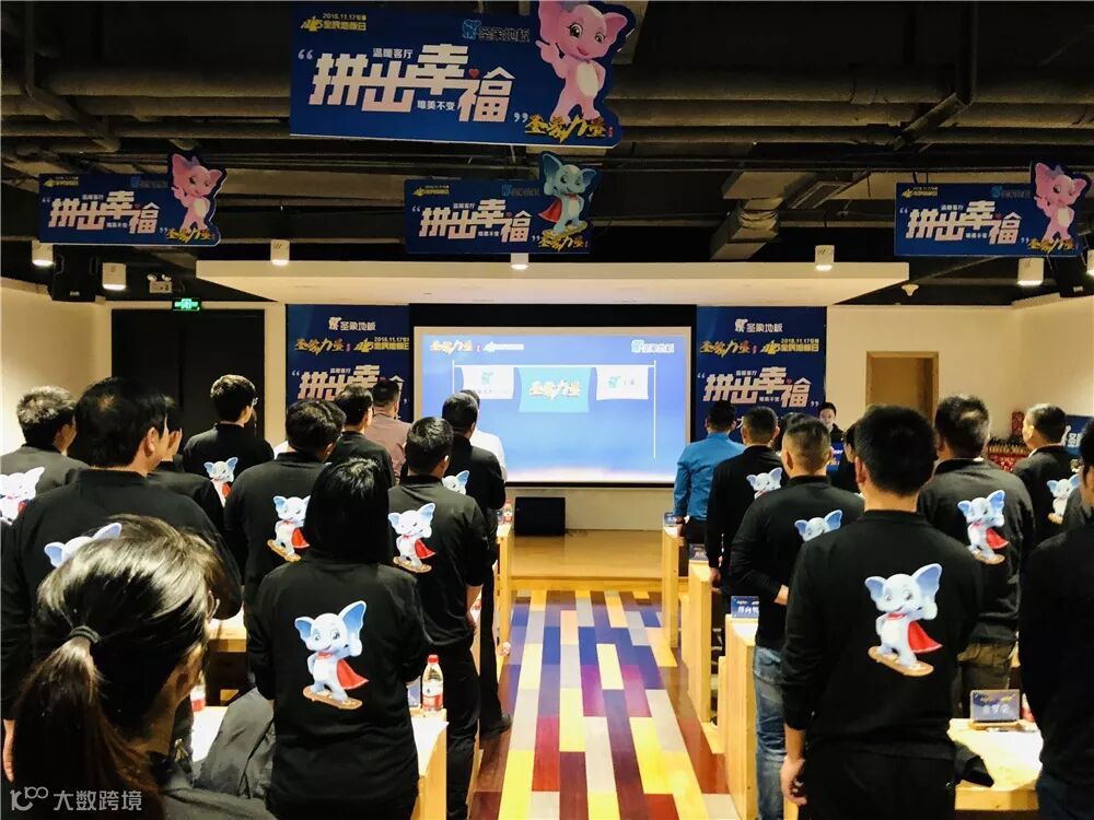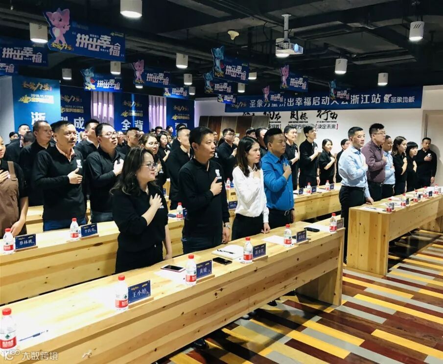 接着主持人宣布11.15圣象力量浙江站启动会开始,与此同时圣象力量之歌响起,代表圣象力量的圣象旗冉冉升起,所有人起立行注目礼。