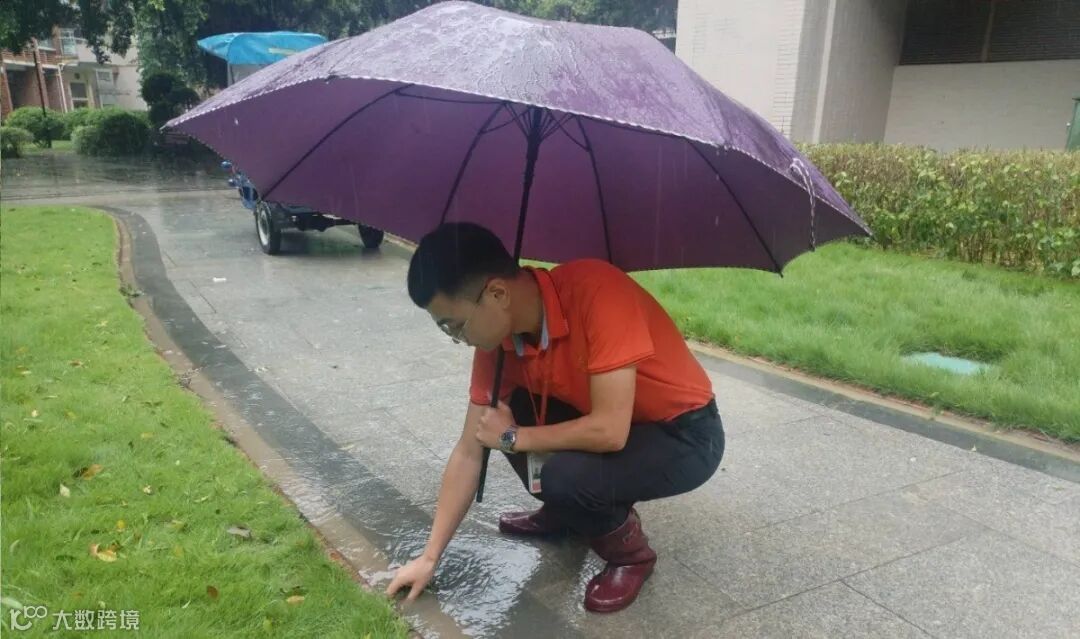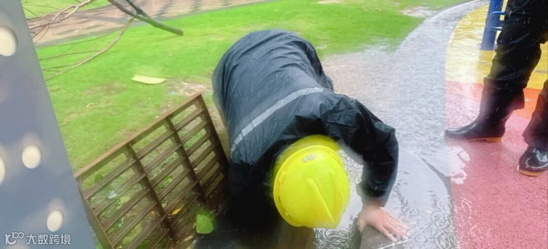 直到积水缓缓退去,园区道路恢复畅通。