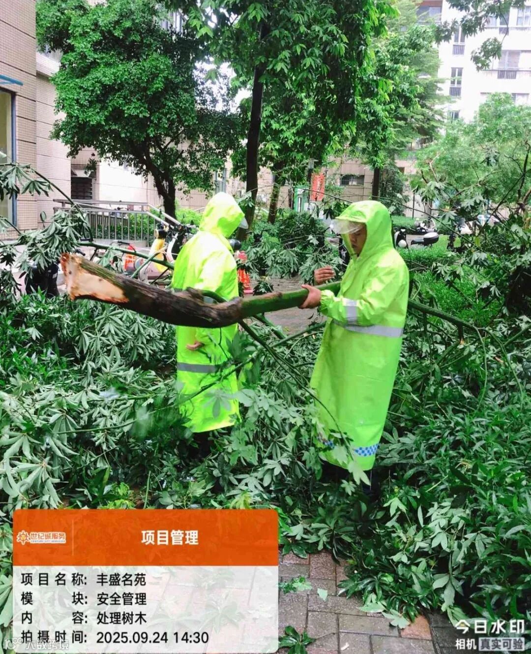 哪里有险情,哪里就有物业人逆行的身影——"台风可以摧毁任何物体,但摧不毁我们守护的脚步。"