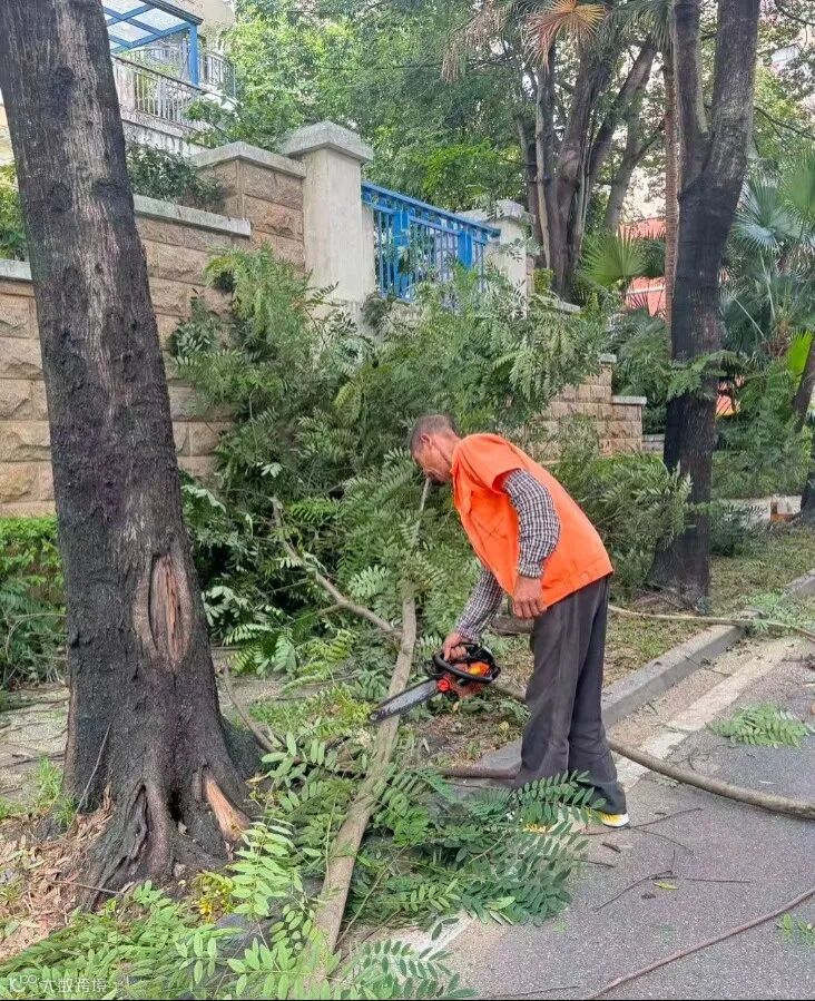 快速清理断枝,恢复园区道路通行。
