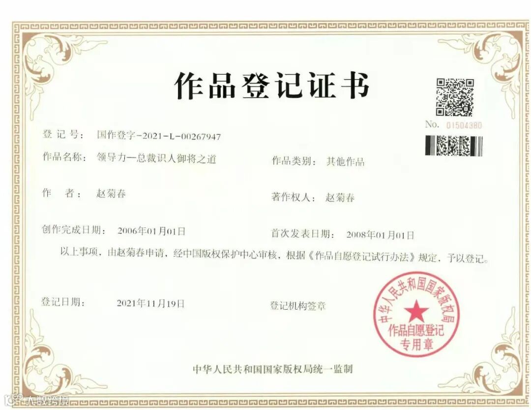 赵教授擅长领导艺术研究领域,践行领导力研究与传播20余年,多年来为清华、北大等名校领导力特聘专家,为商界与教育界培养了数十位杰出人才;《领导力--总裁领导智慧》《领导力--五行性格领导力》《领导力--总裁识人御将之道》课程,通过国家版权局的权威认证。