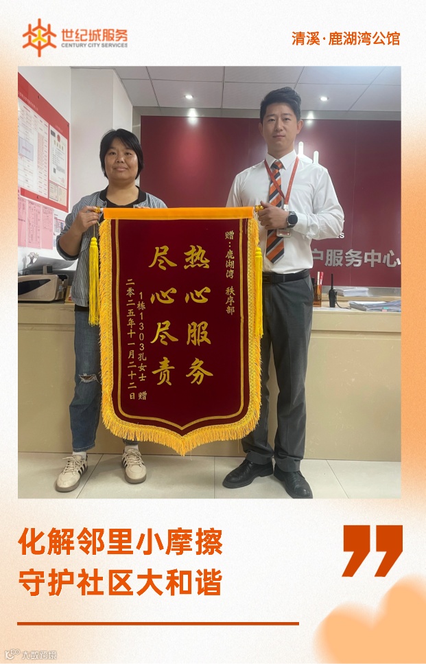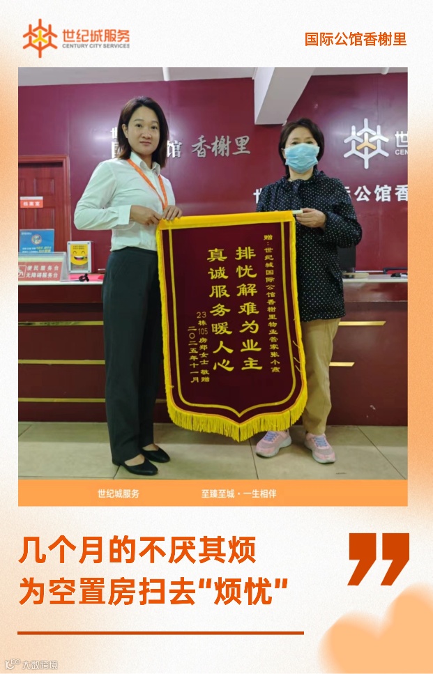 当黄女士将 "情系业主办实事,热情服务暖人" 的锦旗送到服务处时,我们知道,温暖从未缺席。