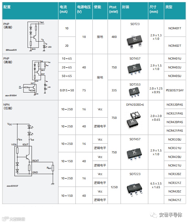 Nexperia(安世半导体)的线性恒定电流 LED 驱动器是一种简单可靠的解决方案,它可以驱动高达 250 mA 的功率 LED, 因此能够支持不断增长的 LED 市场中的大部分关键应用。NCR 器件符合 AEC-Q101 标准,易于使用、可靠且具有成本效益,并提供多种封装选项。