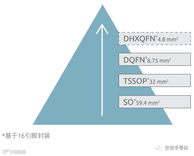微型化是半导体行业的持续发展趋势,Nexperia(安世半导体)推出的 DHXQFN 封装进一步推动了标准逻辑产品系列的这一趋势。与业界适用于 16 引脚器件的 DQFN 封装相比,它将封装管脚尺寸减小了 45%。
