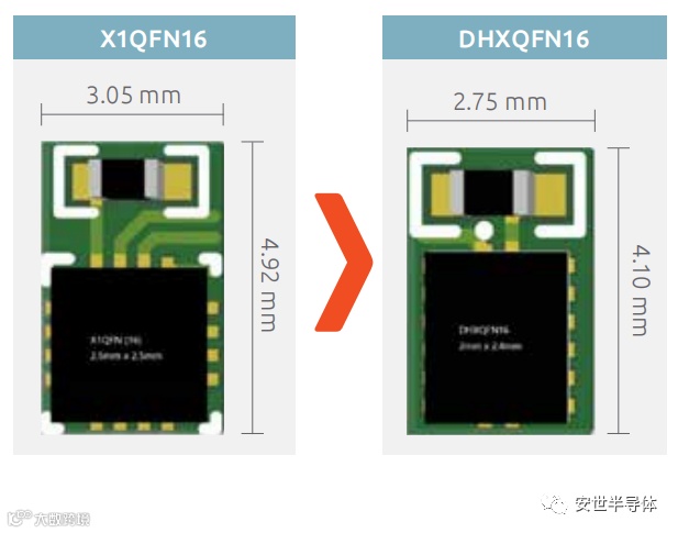 ▶ 与行业标准 DQFN 封装相比,节省 45% 的空间。