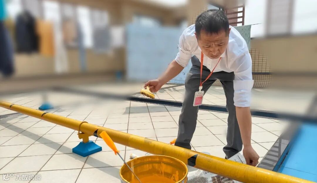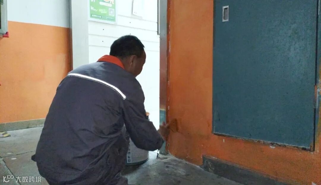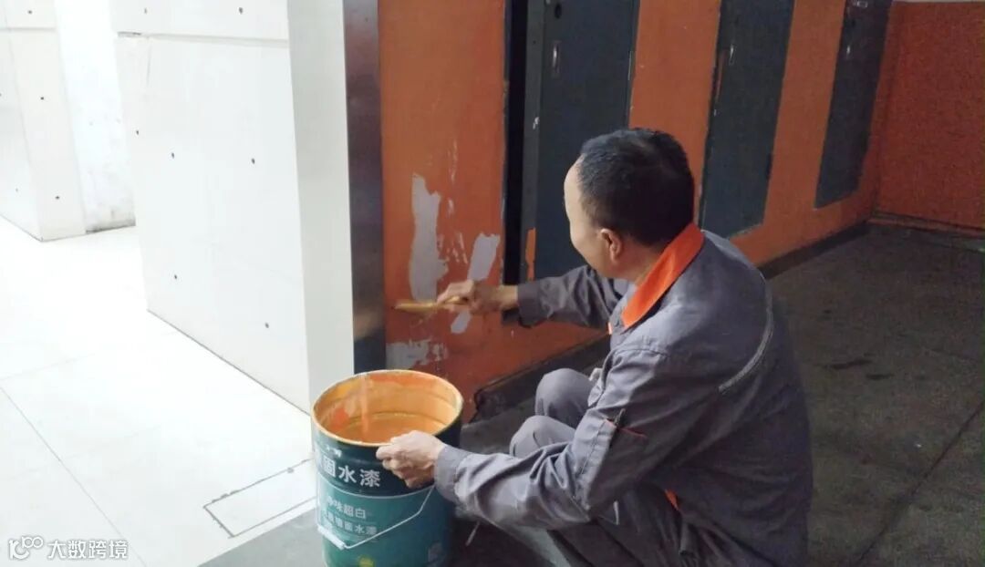 对出入口台阶精心刷漆