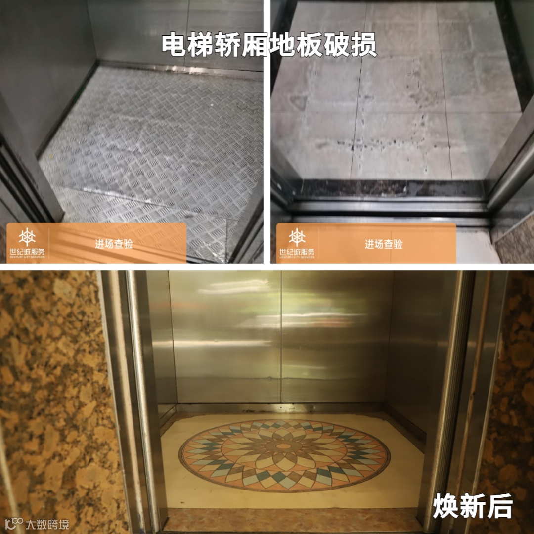 进场前,楼栋电梯轿厢地板存在多处破损,物业精心更换了37台电梯的地面地垫,确保业户归家“最后一米”的舒适与整洁!
