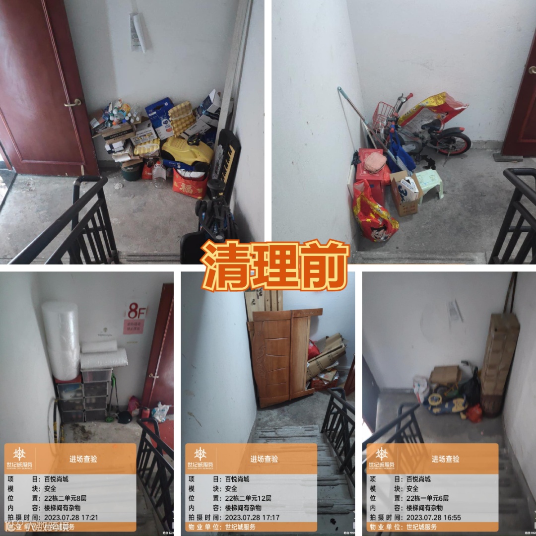 入驻后,物业工作人员对楼道进行集中清理