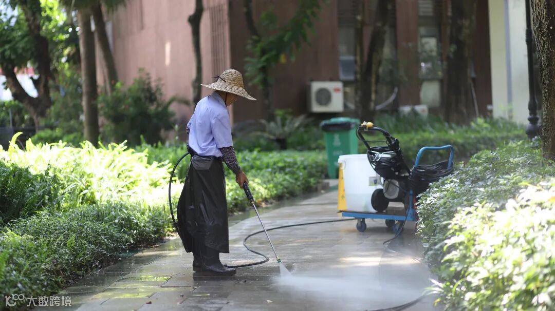 ▲冲洗园区路面