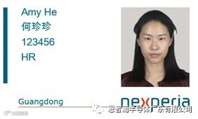 工作证:新工作证使用的是HID Desfire Card,新工作证的标准样式如下图,与现有的工作证差异不大,包含了员工姓名、工号、部门、照片、区域及公司Logo等信息。但新工作证仅作为门禁及消费使用,不作为考勤使用。