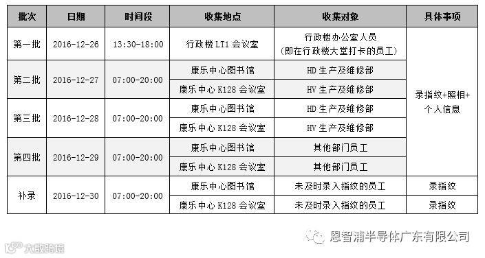 备注:为避免信息收集及照相等待时间过长,造成拥堵现象,我们安排员工分批进行指纹收集、个人信息收集及照相,并安排了2组人员专门负责此事宜,一组位于康乐中心图书馆,另一组位于康乐中心K128会议室。行政楼LT1会议室仅作为行政楼办公室人员(即所有在行政楼大堂打卡的员工)收集信息,录入指纹及照相。
