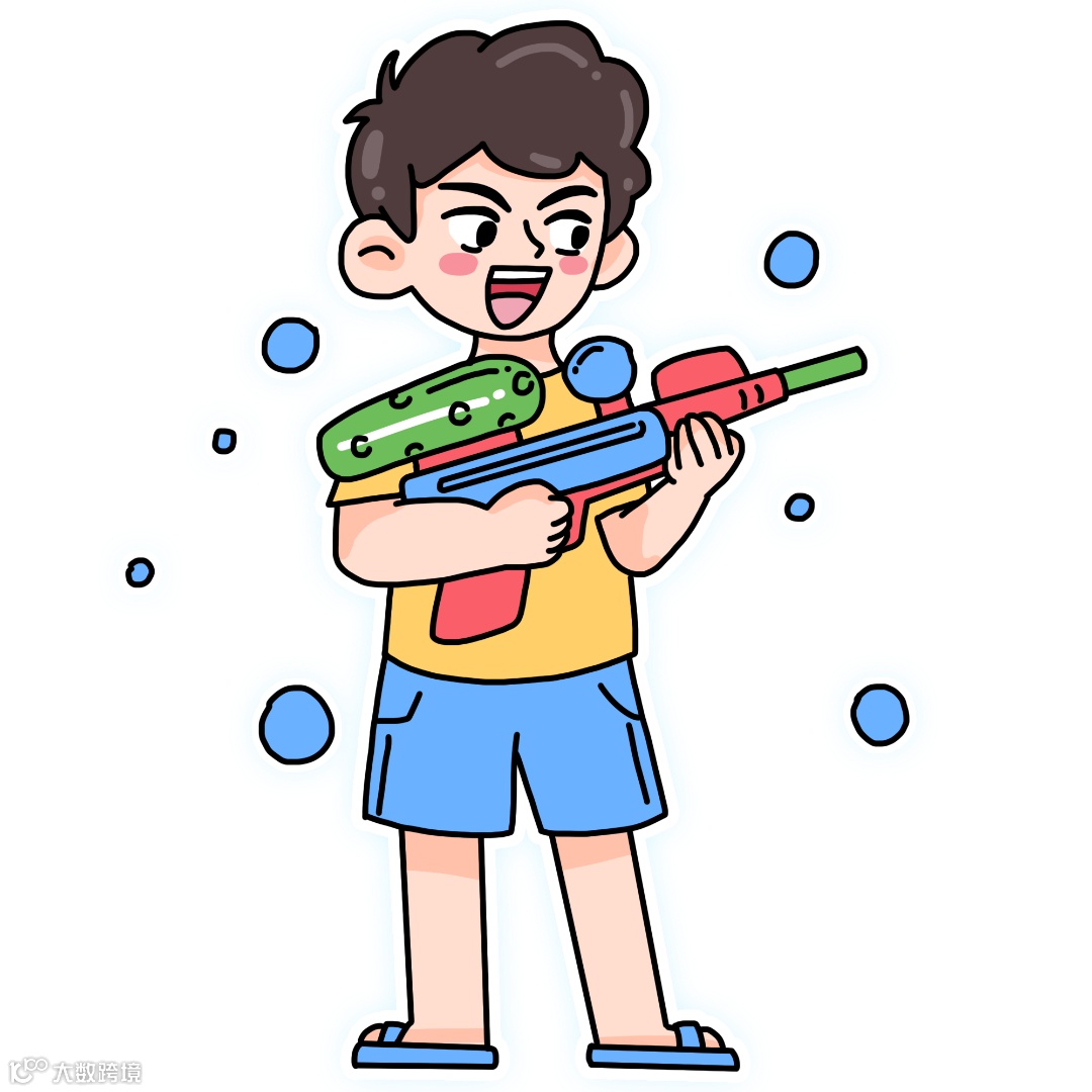 拿起水枪,喷出水花