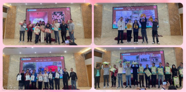 中午时分,颁奖仪式在聚餐地点隆重举行。活动负责人对活动进行了总结,并向所有参与者表示了衷心的感谢。随后,大屏幕上播放了各队伍的寻宝照片,让大家共同“回味”活动中的精彩瞬间。组委会根据各支队伍寻宝完成先后顺序,以及是否按指定动作、地点打卡的审核结果,评选出表现出色的 8 支队伍,并由公司高层领导亲自为获奖团队颁发奖品,以表彰他们在活动中的优秀表现。