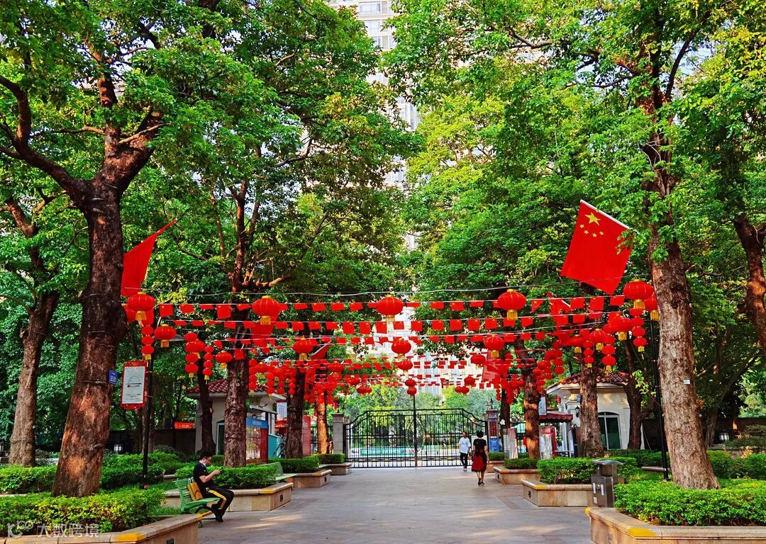 让园区展现出浓浓的国庆氛围