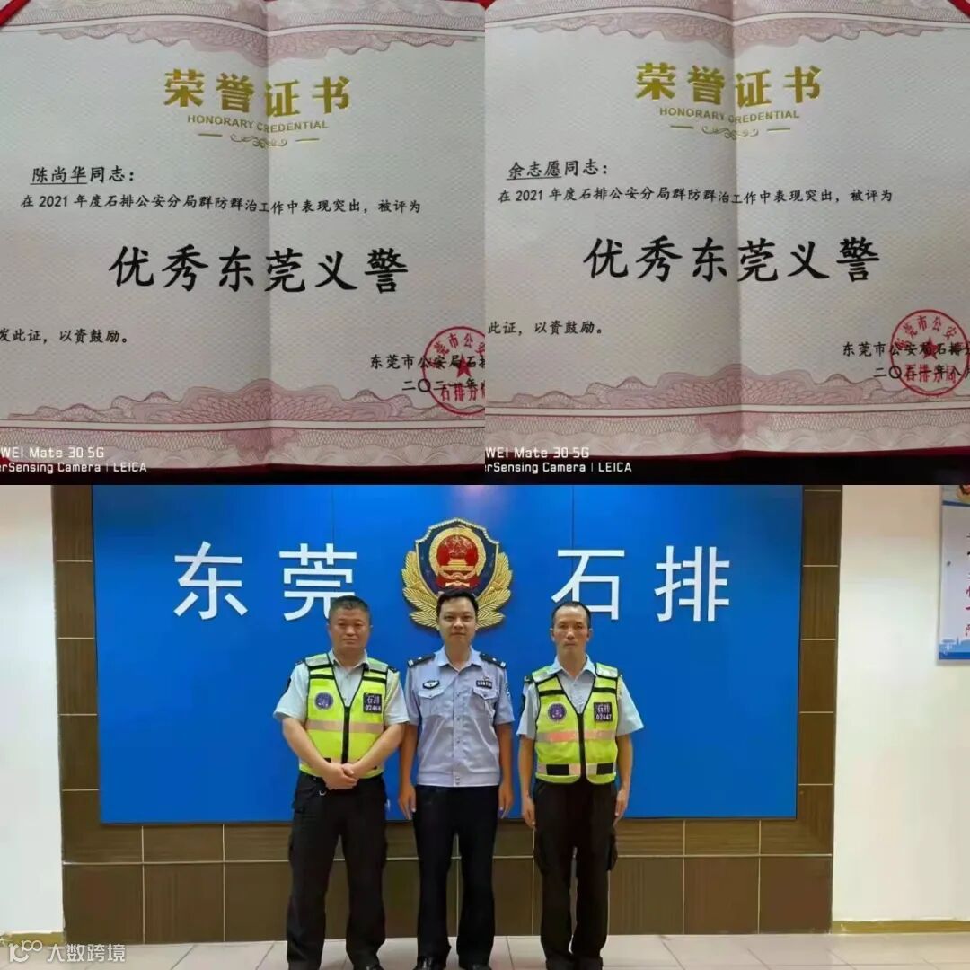 2021年8月,支部党员同志余志愿不顾个人安危勇救业主于危难,荣获石排公安分局“优秀东莞义警”称号。