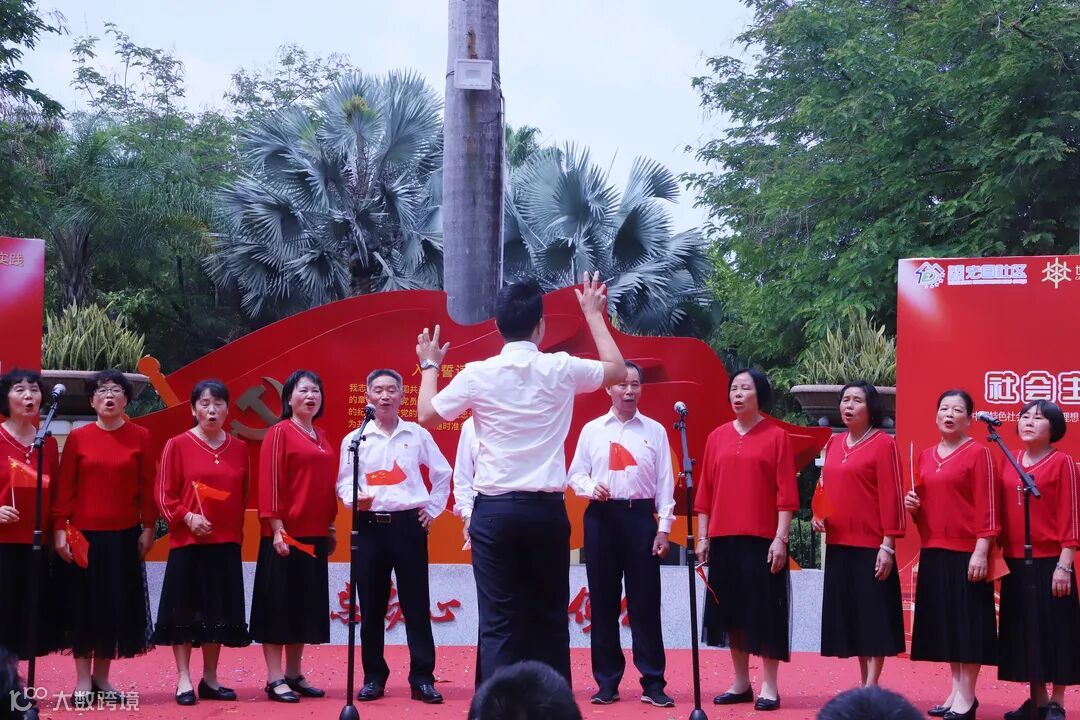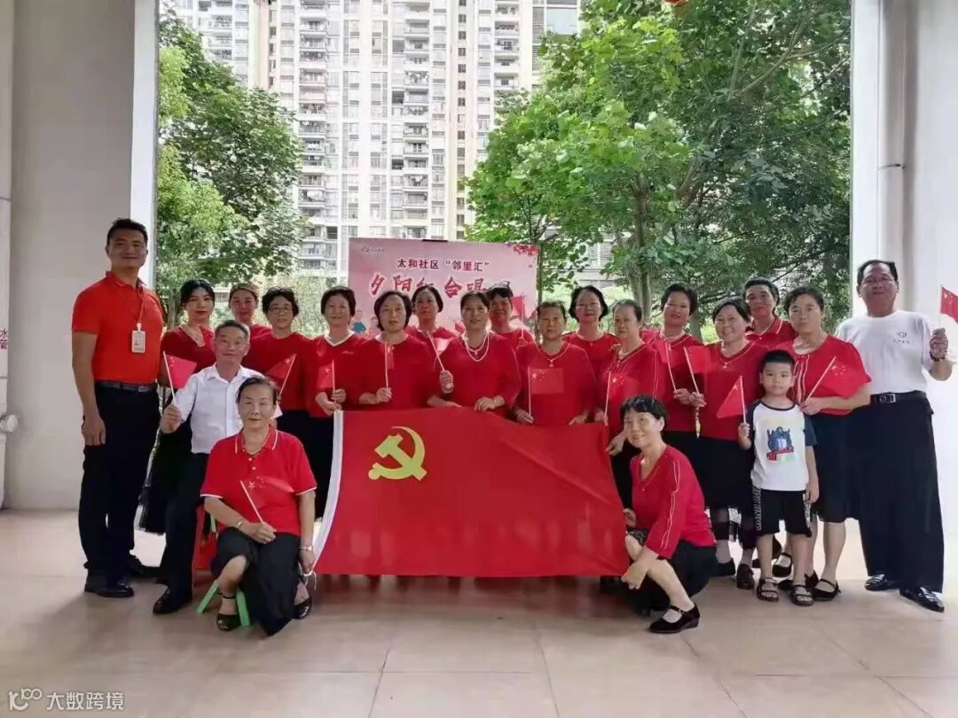石排凯旋湾花园党支部积极组织社群组织“夕阳红合唱团”参与世纪城服务睦邻文化节活动,通过演唱红色歌曲《歌唱祖国》献礼建党百年。