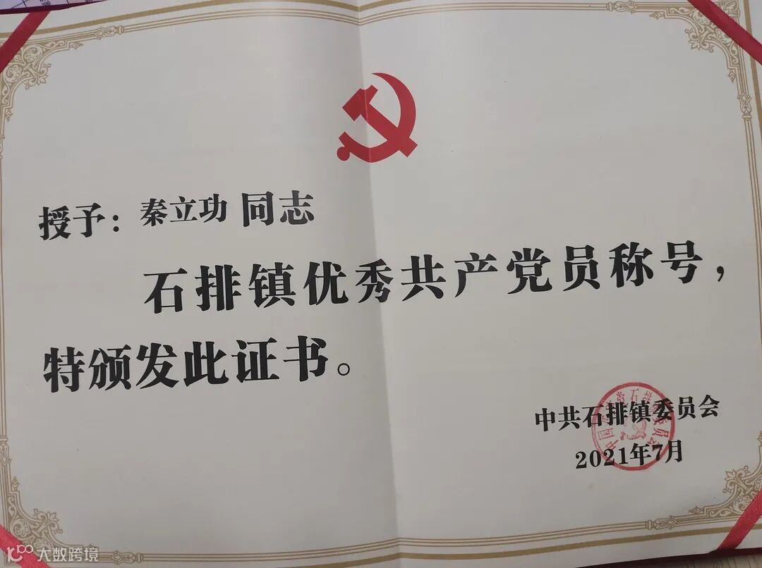 2021年7月,石排凯旋湾花园党组织支部书记秦立功荣获“石排镇优秀共产党员”称号。