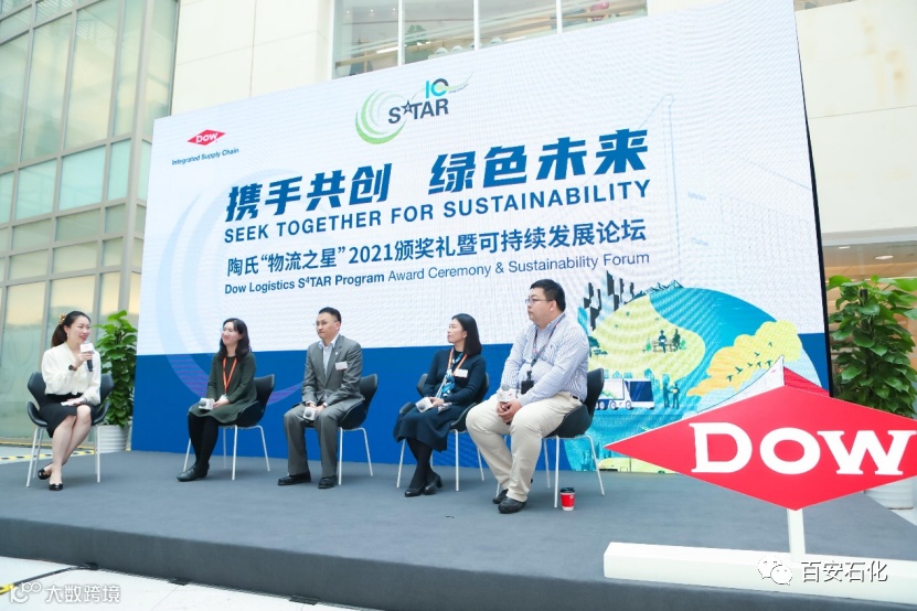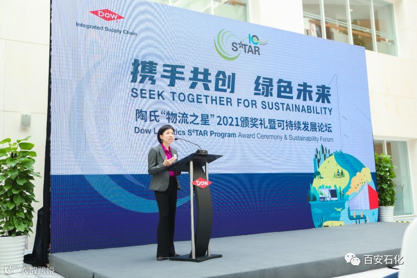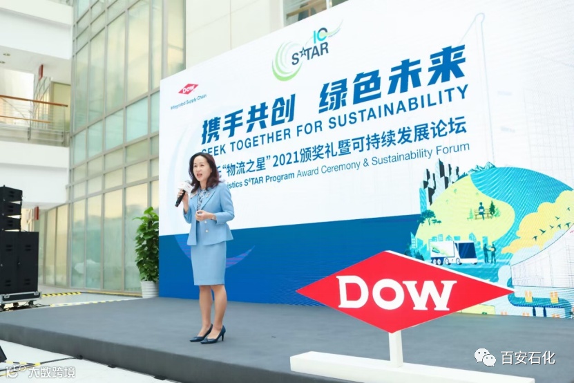 2021年10月26日,陶氏“物流之星”2021年颁奖典礼暨十周年庆典与可持续发展论坛在上海陶氏中心隆重举行,陶氏化学大中华区副总裁褚晓勤女士、亚太区物流及客户服务总监黄佳敏女士、北亚区物流总监章一姿女士、大中华区物流团队、陶氏化学来自中国区域的服务商代表及行业嘉宾出席仪式。百安石化总经理董兆昆先生受邀出席,商务及发展部李柳娜女士以及运营中心黄秋香女士陪同出席。