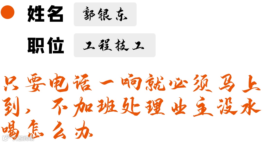 郭师傅坚定地说道:做工程最关键的是要有责任心,除了责任心还是责任心,无论是做什么事情,都要考虑到别人和自己的安全,有了这种心态以后,在工作中巡查设备房、其他设备时,打着手电筒,才能慢慢的看出问题;其次是要细心,工程这活不能急也不能躁,一急躁就容易出安全事故;最后是不能怕吃苦,吃苦就干不好这个活。