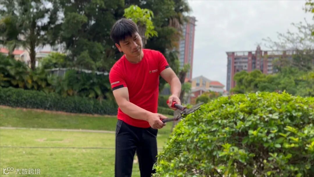 姜师傅服务的小区是别墅区,小区范围较大。小区里的花草树木,在他的照料下,栩栩如生。他每天像陀螺一样在花草树木中转啊转啊转,他说:“看到不美观的就想修剪得漂亮一点,业主看着舒心,自己也满意。”
