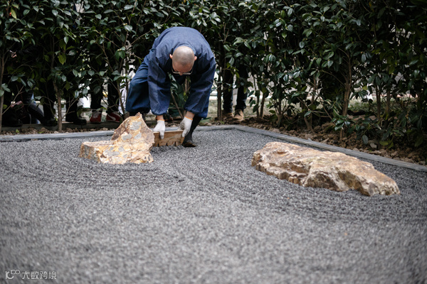 ▶ 近日,枯山水大师枡野俊明首度造访中国开展枯山水交流活动,在活动当天现场制作枯山水作品,众多造园艺术爱好者从全国各地飞来上海争睹大师作品。