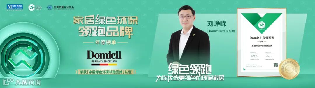 其中2021年获得的FSC(Forest Stewardship Council)森林管理委员会认证,也是家居软体行业较早获得认证的企业,将针对欧洲客户的环保要求引入到国内市场,选取符合森林管理及评价标准的优质木材进行沙发制作,从原材料、生产过程、运输、包装、仓储……各个环节上尽量减少对环境的影响;2022年,Domicil荣获中国质量认证中心授予的 “家居绿色环保领跑品牌”殊荣,为消费者带来时尚环保的绿色家居产品,满足消费者多元化需求,焕新美好生活;2023年Domicil荣获“SUSTAINABLE GREEN CONTRIBUTION BRAND可持续绿色贡献品牌”奖项及荣誉,倡导行业品牌共同关注绿色未来,坚持可持续生活方式;未来Domicil也将一如既往地支持低碳环保事业,持续为中国消费者带来时尚经典的家居体验与服务。助力推动产业升级,赋能家居行业高质量发展。