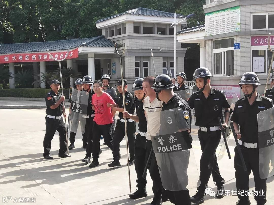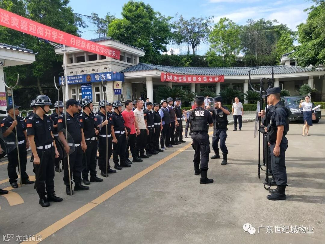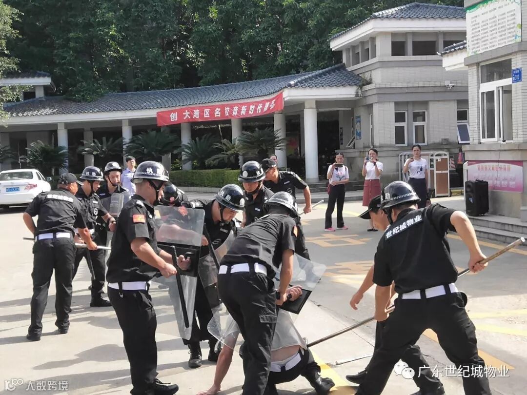 为加强南开实验学校校园安全保障工作,维护师生生命财产安全,检验秩序维护员妥善处理校区持刀行凶、打架斗殴等突发恶性治安事件的快速处理能力,2019年9月5日下午15时30分,广东世纪城物业联合南开实验学校领导、辖区派出所、特勤队、君珆爱弥儿幼儿园一同开展了2019年校园防暴演练活动。