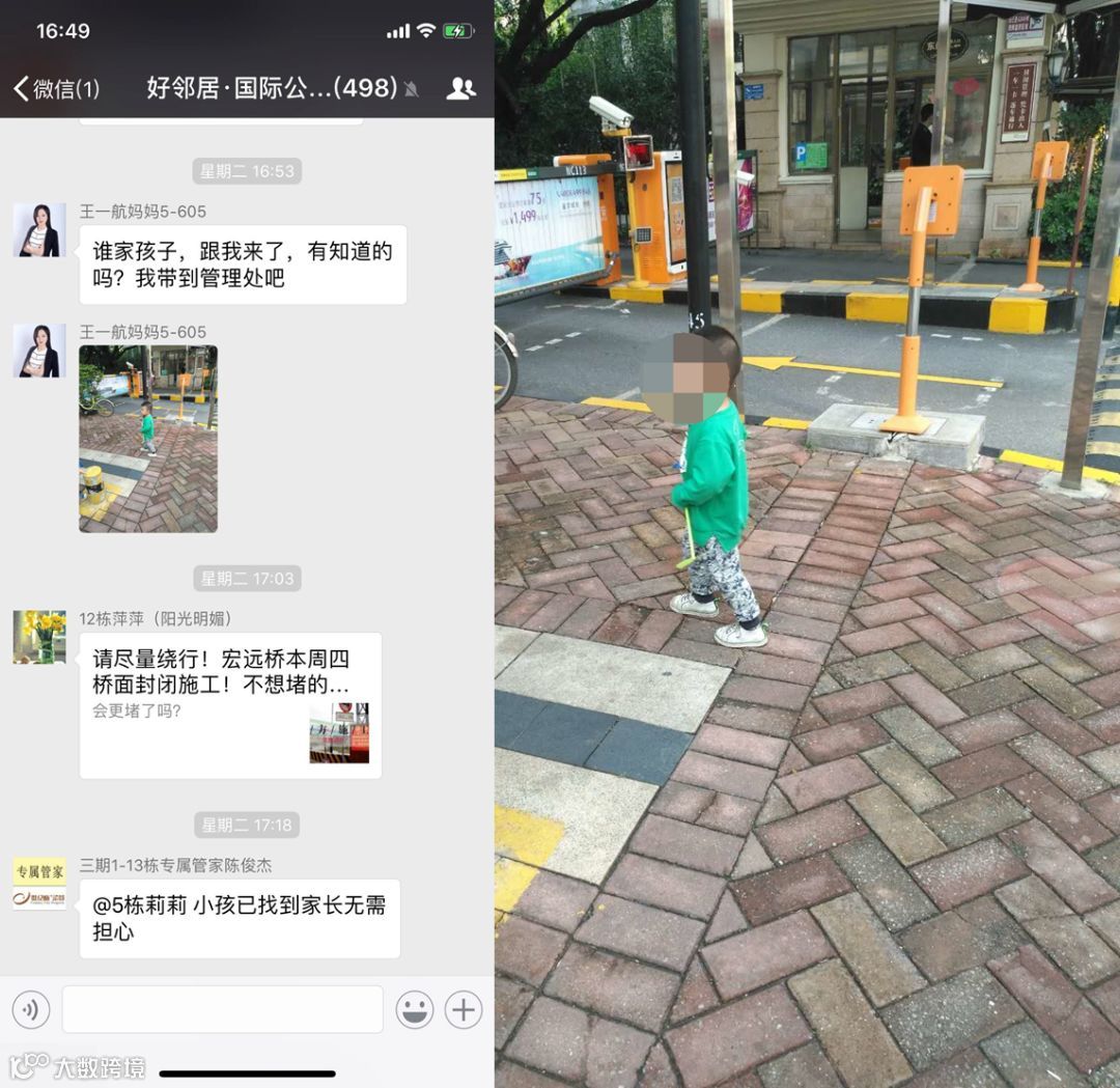 2018年4月17日下午国际公馆三期业主微信群收到一条信息:“谁家孩子?跟着我来了,有知道的吗?我带到管理处。”根据业主所发的小孩照片,三期客服部李旭马上辨认出来图中的小孩是国际公馆一二期业主的,他当即联系了国际公馆一二期走失小孩的家长,并微信群里告知业主,三期服务处正在联系小孩家长。与此同时国际公馆一二期走失小孩的家长急忙赶到了三期物业服务处。家长惊魂未定地对三期5栋好心的业主和三期服务处客服人员说:“感谢好心人的帮助,不然我家的小孩真就走丢了,我们会后悔一辈子的。”