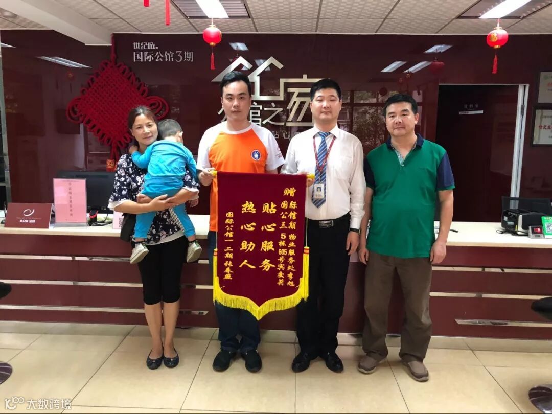 小孩走丢,世纪城物业客服人员安抚小孩并联系家长,最终小孩父母在国际公馆三期服务处带回小孩并赠锦旗表示感谢。
