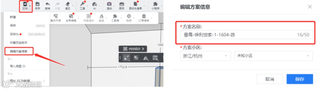 ①酷家乐中方案名称=订单名称,需规范填写;