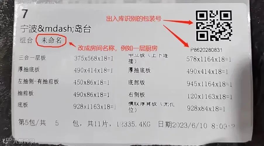 ③包装箱通常是叠放,如标签贴在正面会遮挡,不利于工作人员查看。上述两种标签贴法,有利于工厂快速扫码进行出入库,以及施工现场快速找到标签进行分货