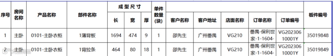 ①图一标签具备门店名称、订单号、订单名称、客户名称、客户地址、房间名称、柜体名称、包含板件等信息,比较齐全,现场可快速定位货物归属哪个地方;