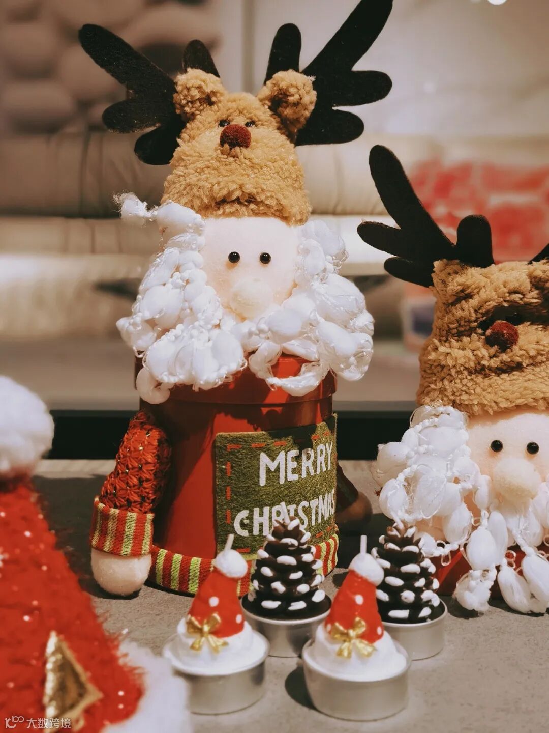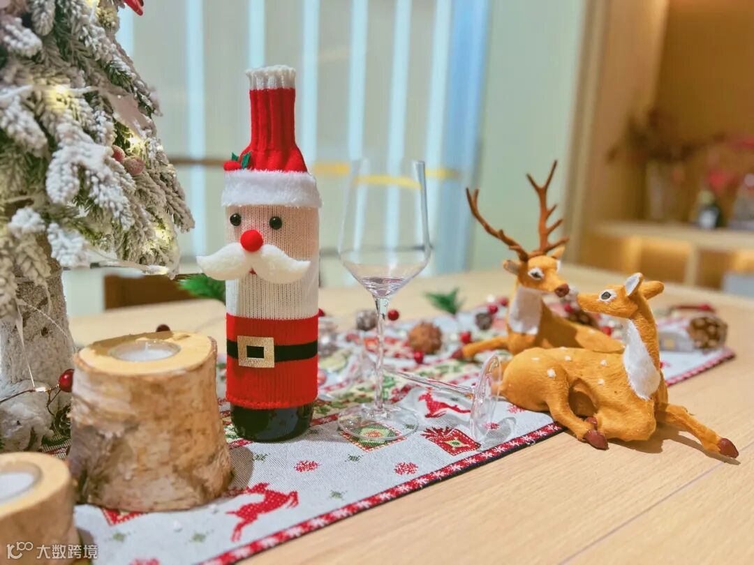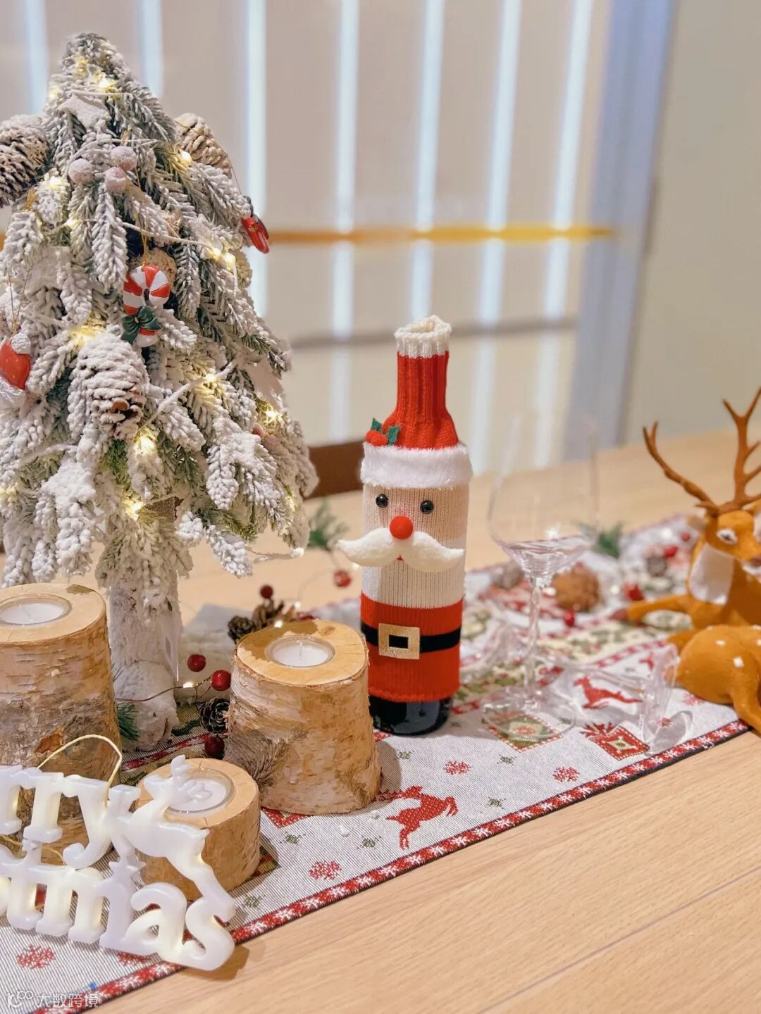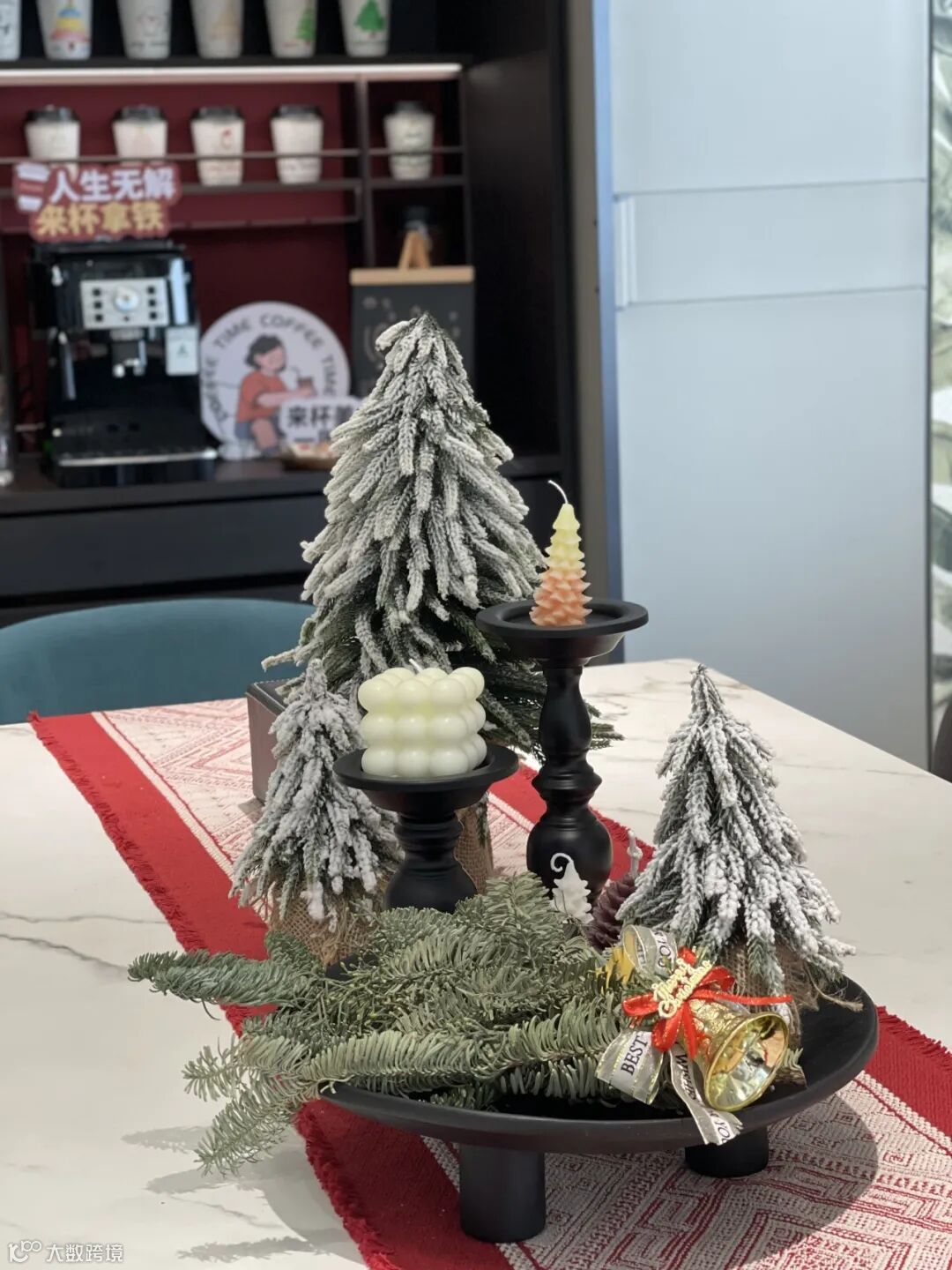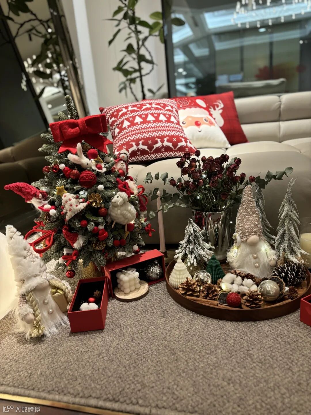 小巧精致的圣诞饰品点缀着桌上的每一个角落。