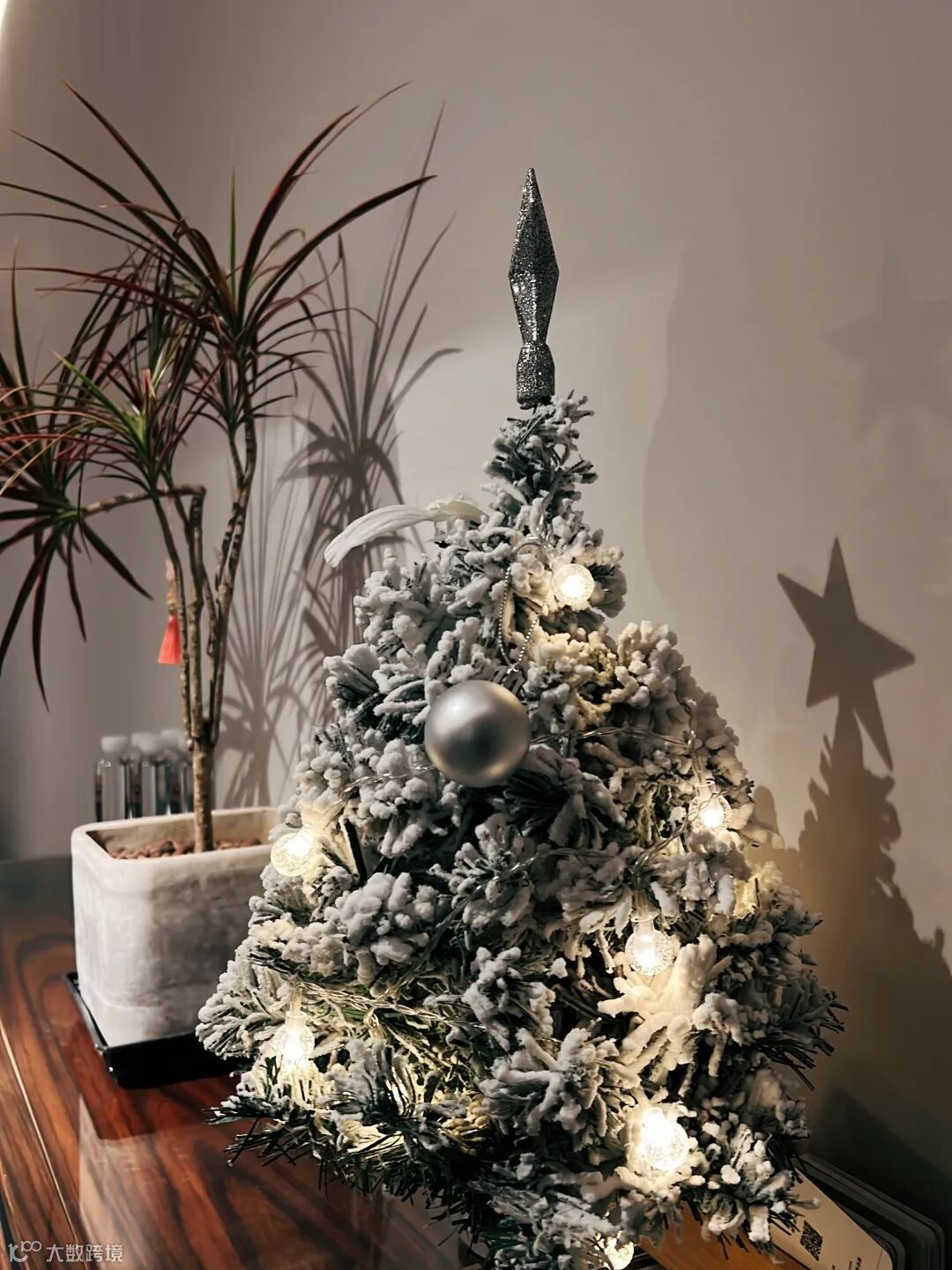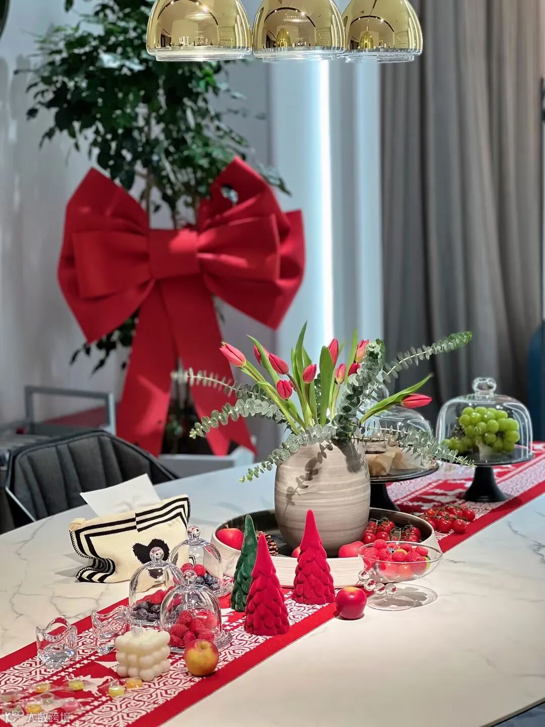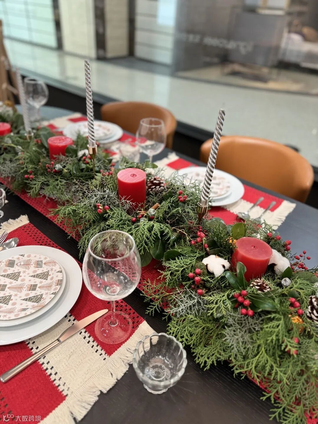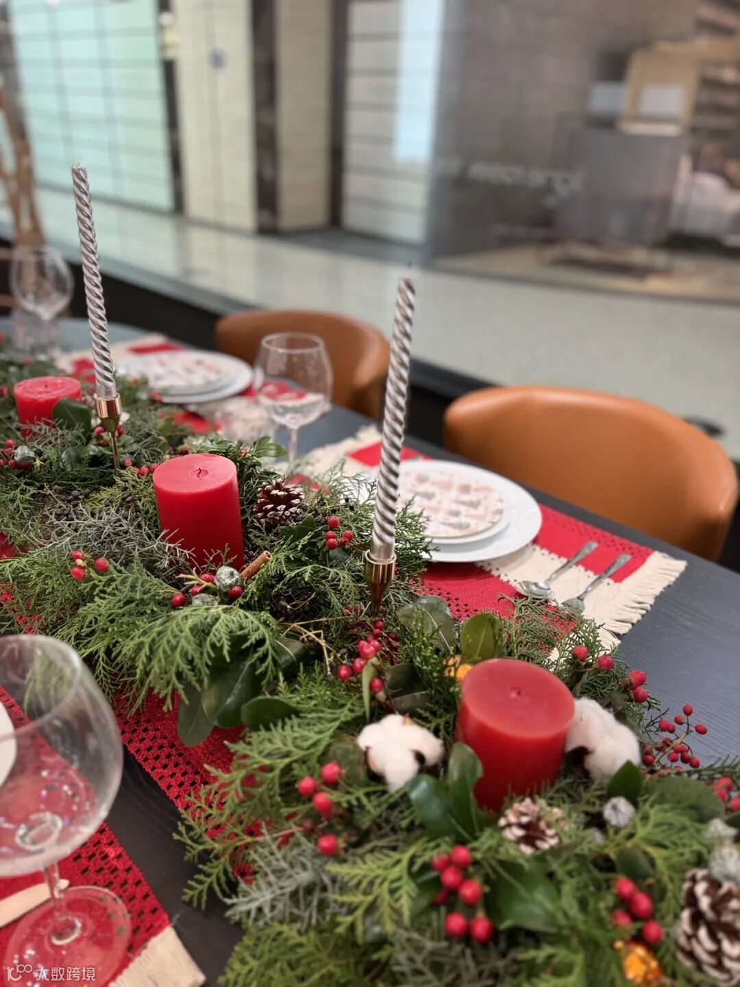 小巧精致的圣诞饰品点缀着桌上的每一个角落。