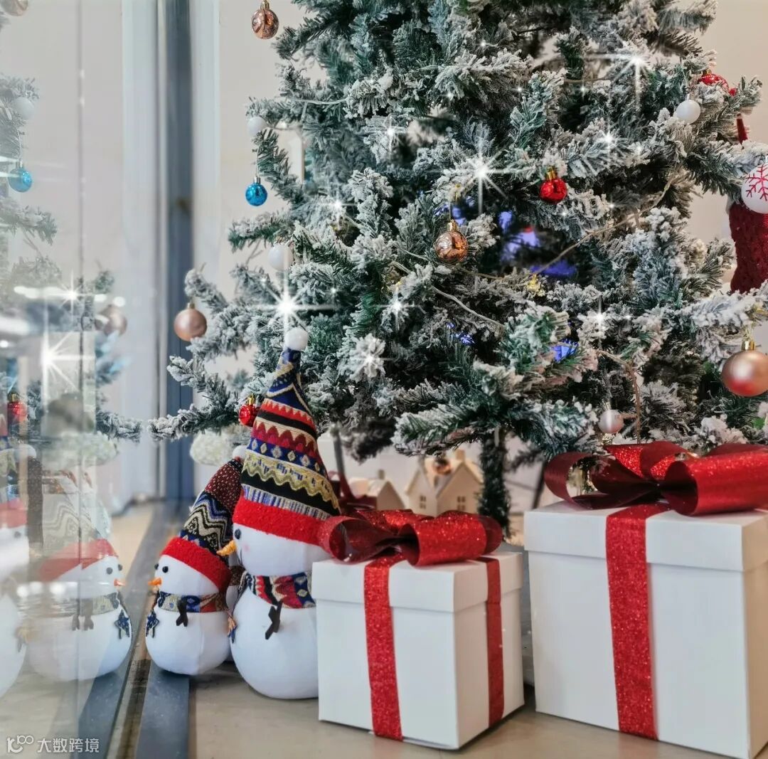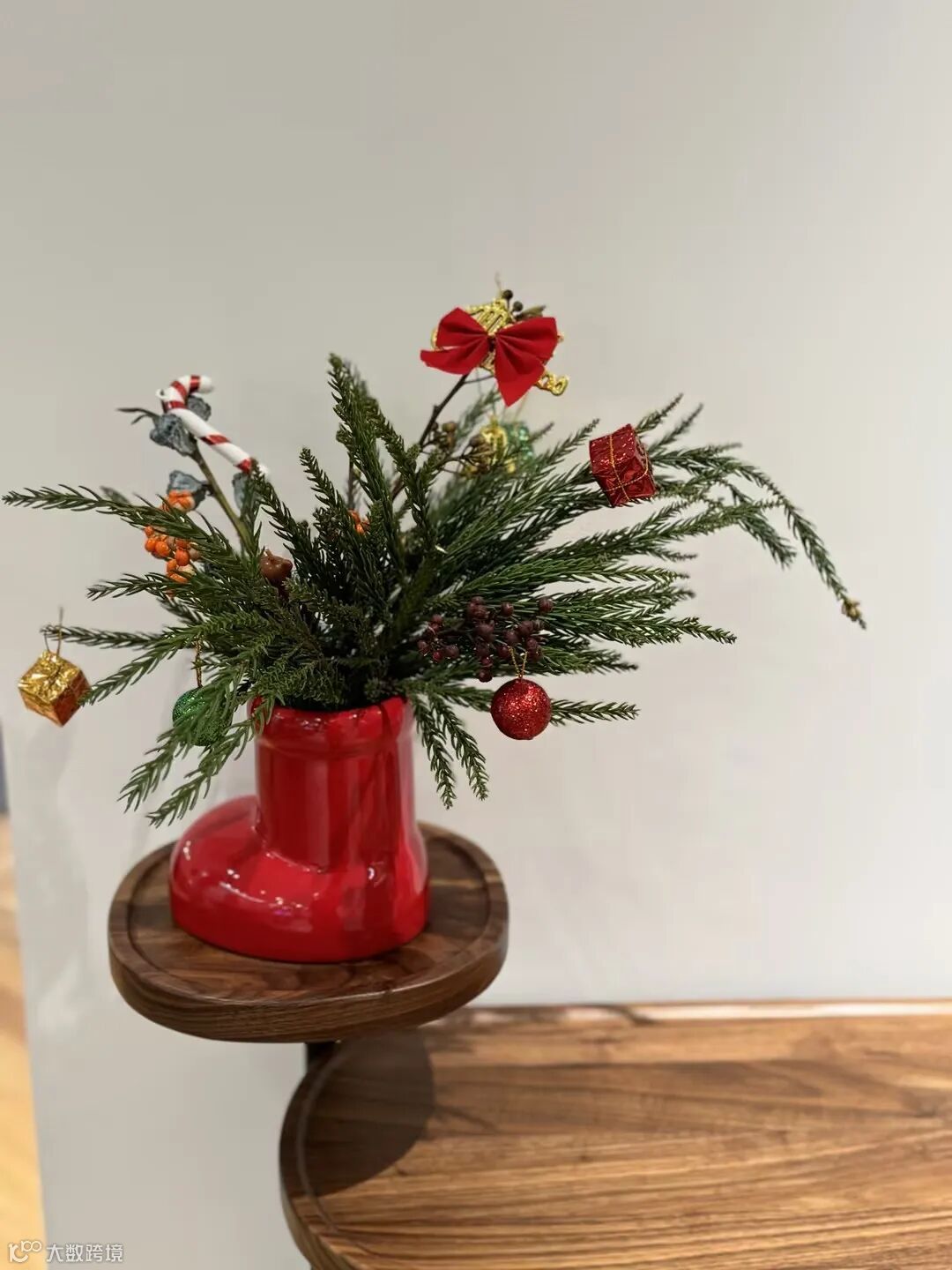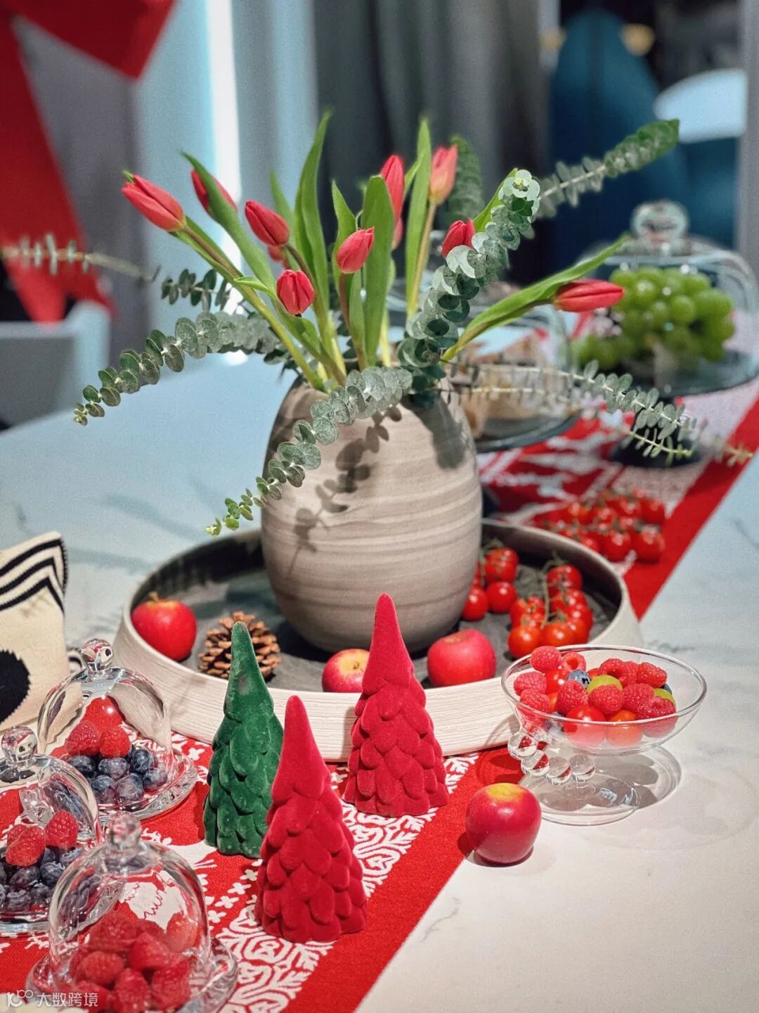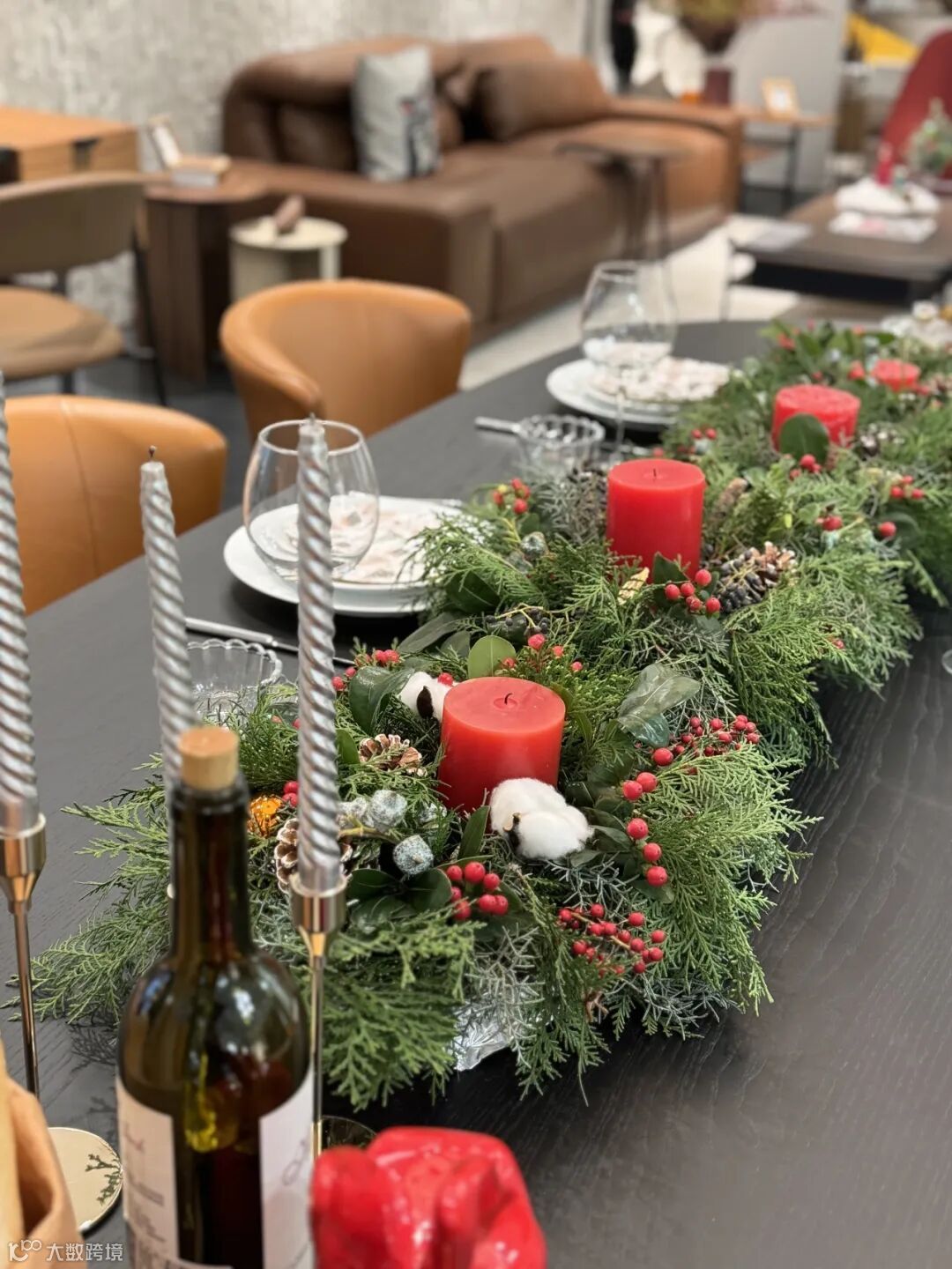 小巧精致的圣诞饰品点缀着桌上的每一个角落。