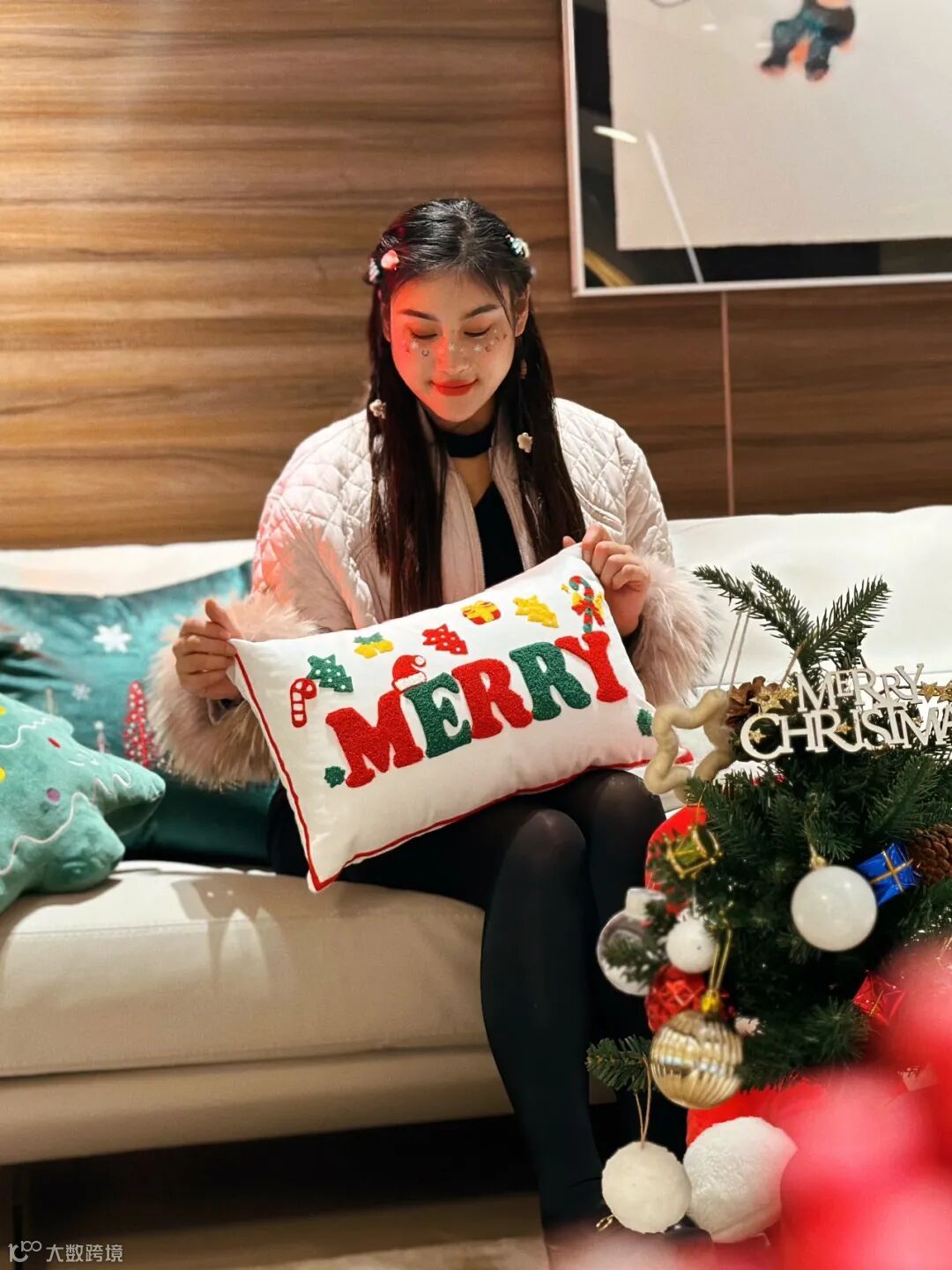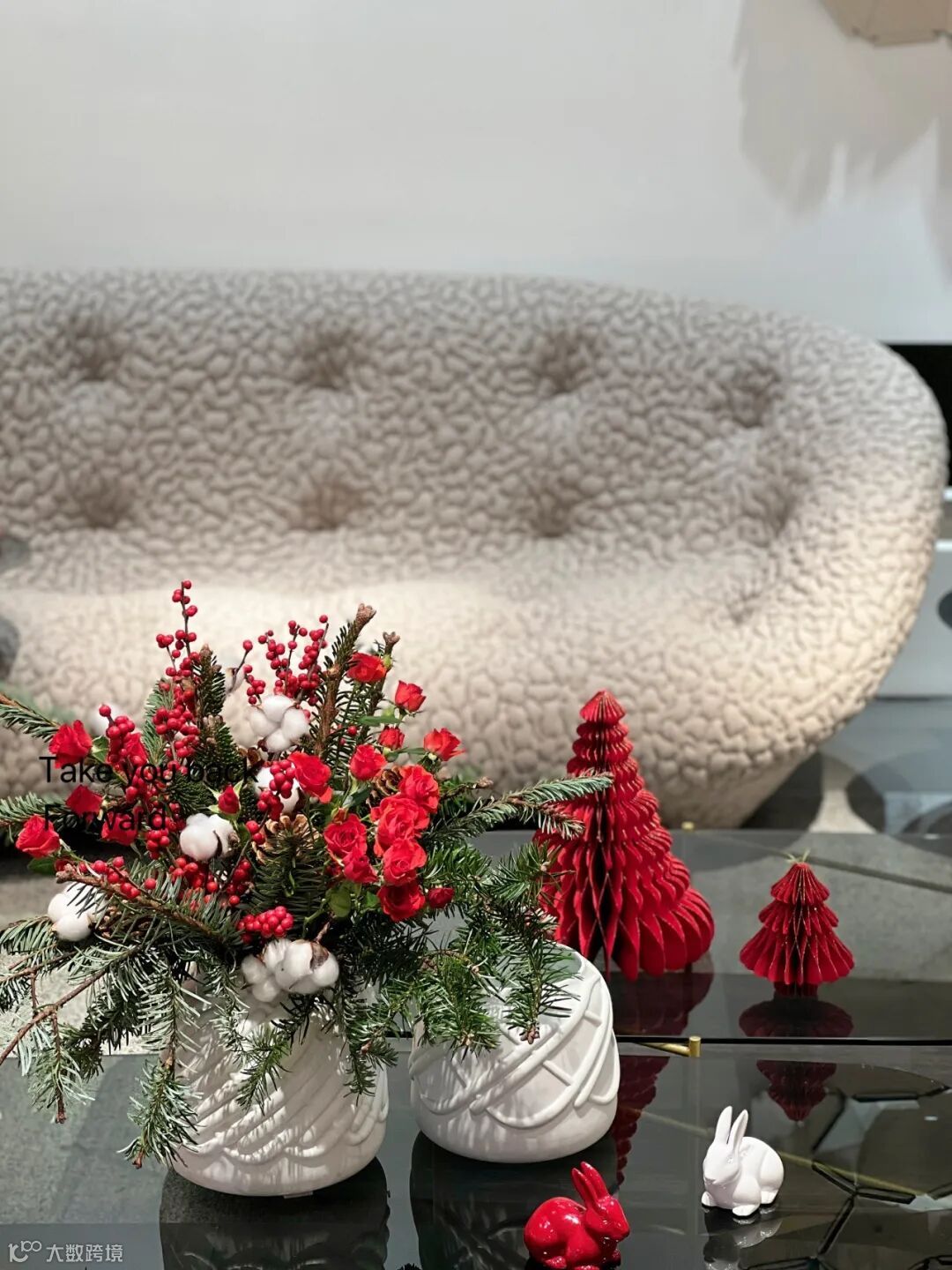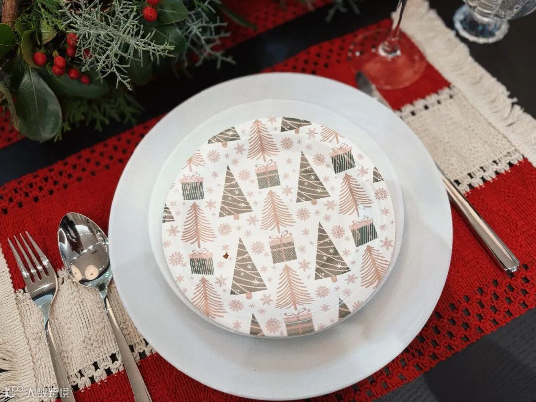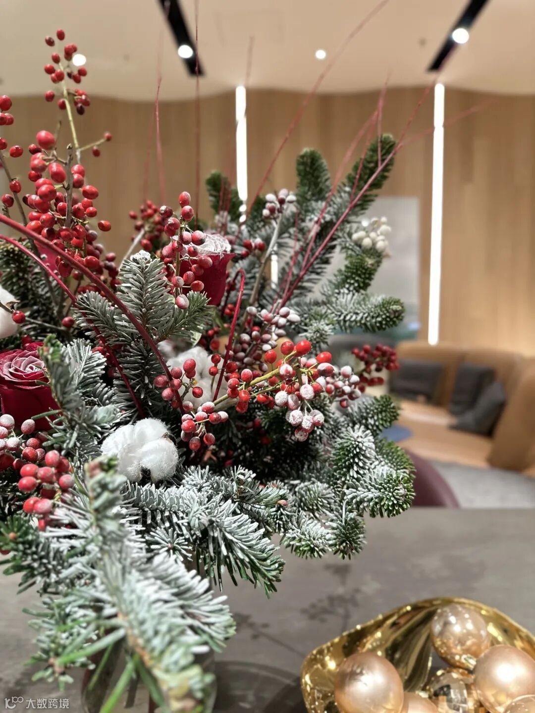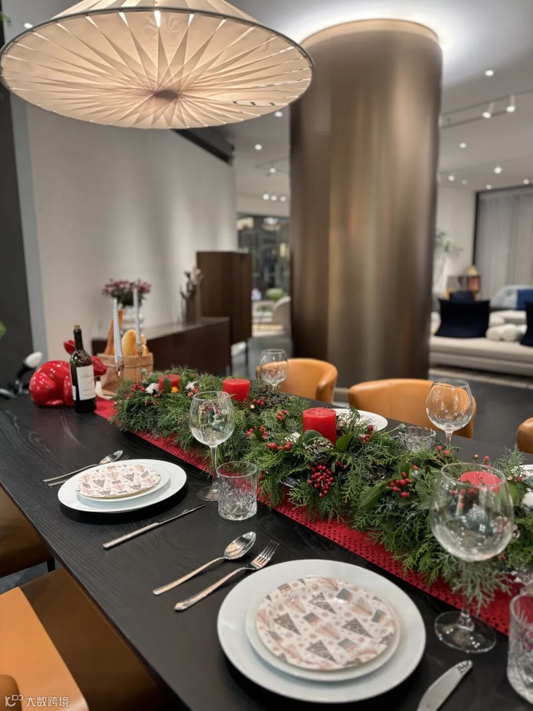 小巧精致的圣诞饰品点缀着桌上的每一个角落。