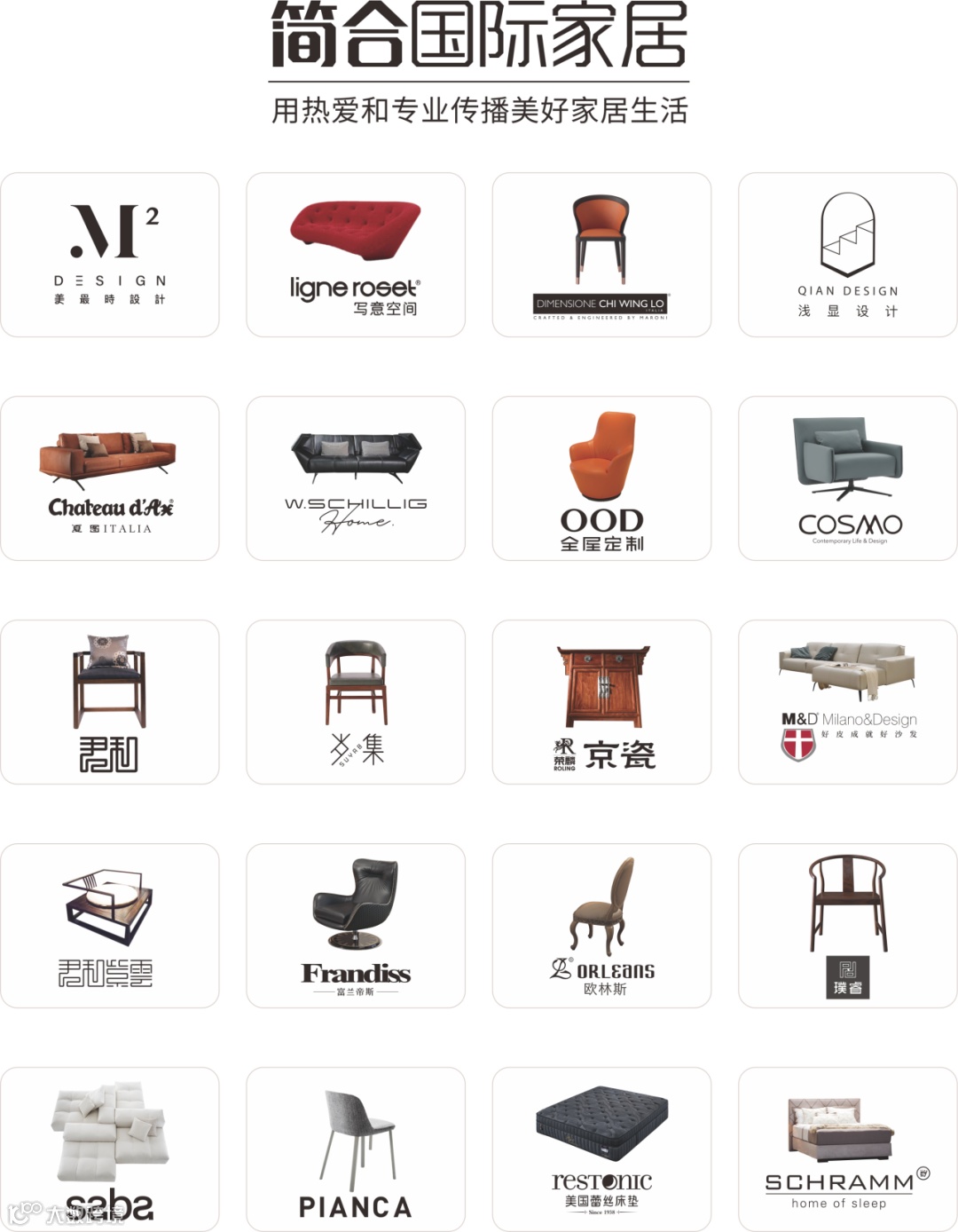 简合国际旗下汇聚了来自中国、意大利、法国、德国、澳洲等全球各地的家居品牌,各种风格、适用于各类空间和生活场景的家居产品应有尽有。