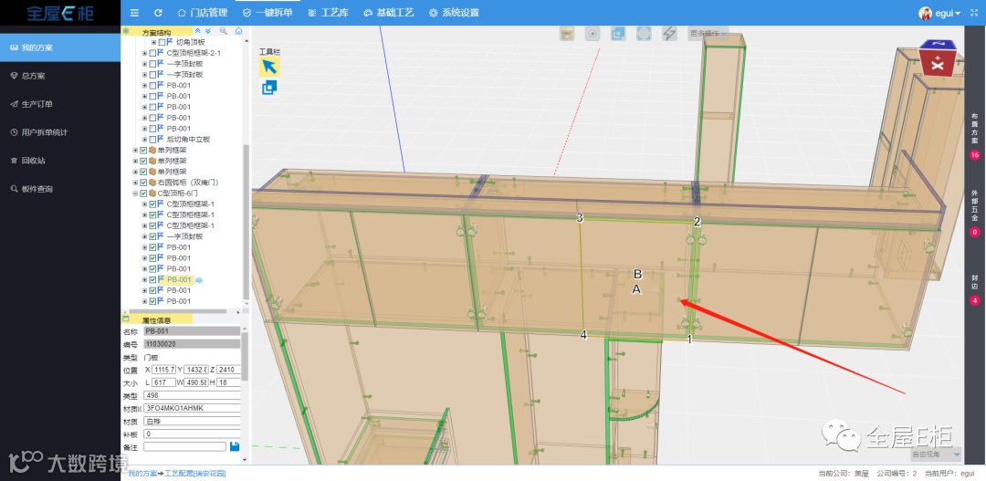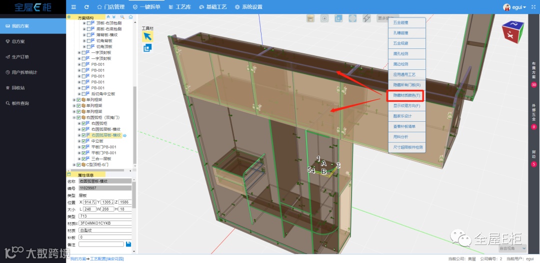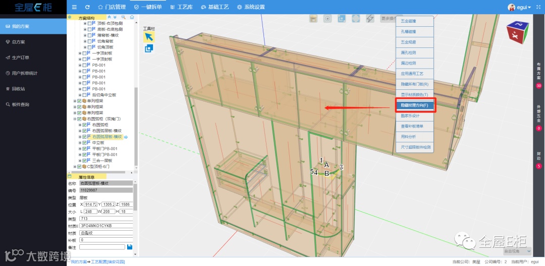 审核工艺中可以清晰识别及更改板件纹理方向,如下