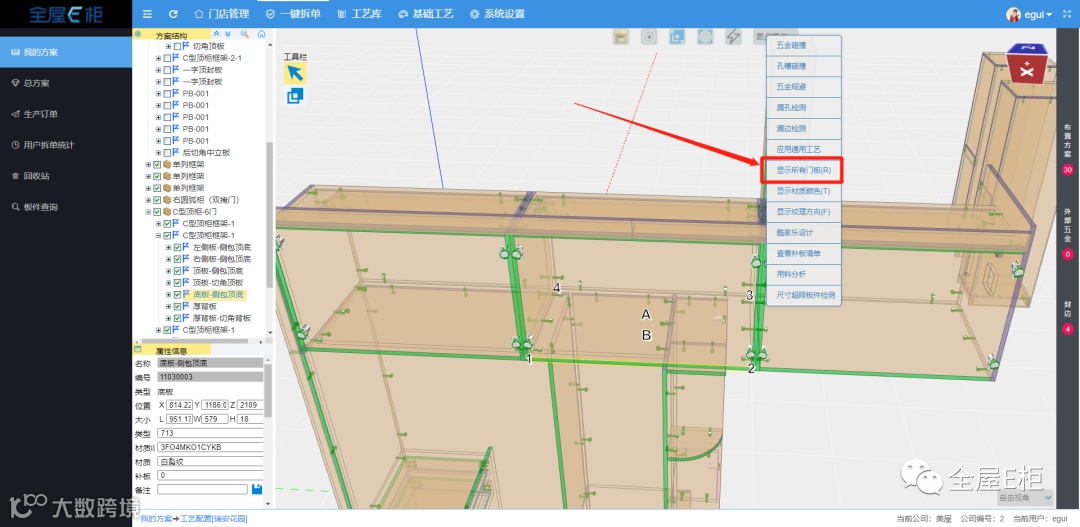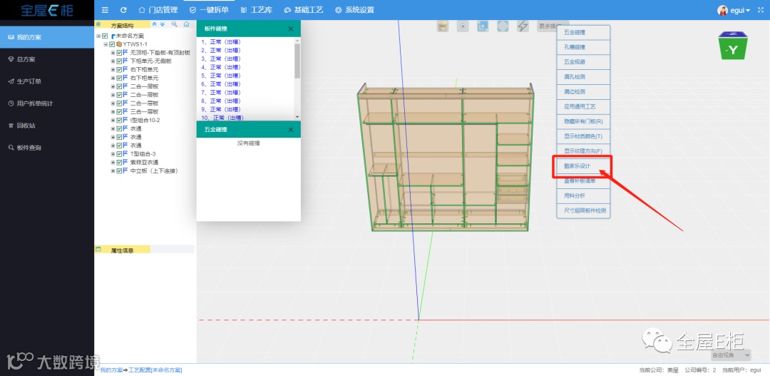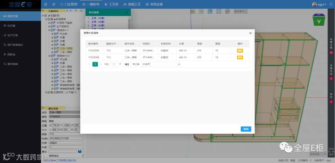 在审核工艺中可以自动分析需要用到的五金、板材、封边等材料,便于材料核对与准备