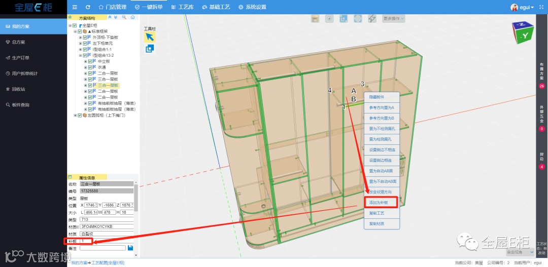 如板件损坏丢失等情况,可在审核工艺中选择板件添加为补板,在更多操作里可以查看补板清单