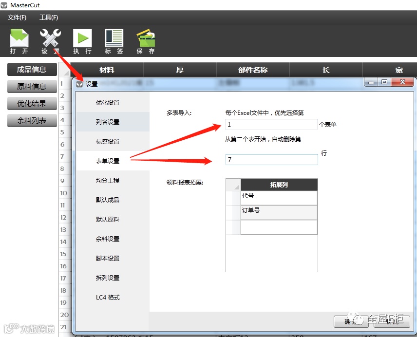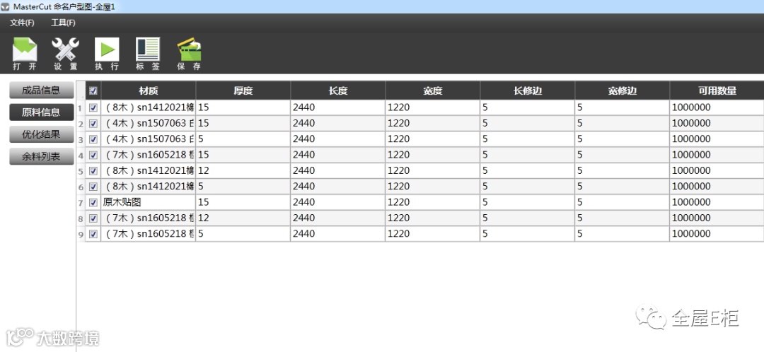 2.原料信息即导入表所要用到的大板类型或者板材