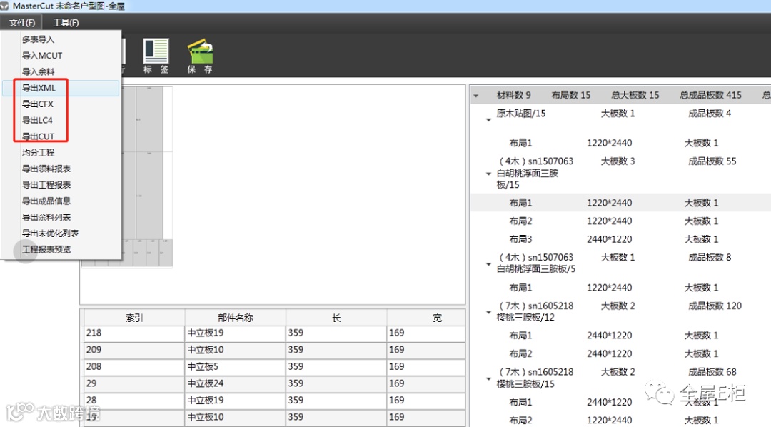 2.导出的每一个xml格式文件为一种板材切割文件,包含多个布局图。支持读取标签文件,支持采用一板一贴。