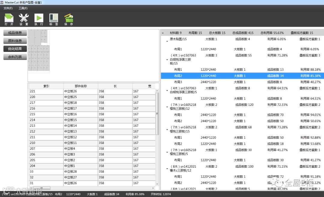4.余料信息展示该表优化后余料尺寸等信息