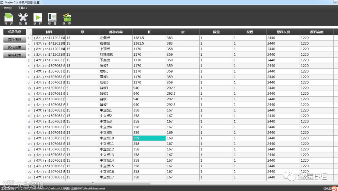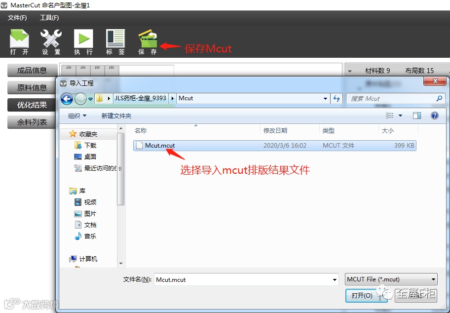 3.mcut格式导入方式,此格式为MasterCut软件执行优化后,保存的排版结果文件,即用于下次直接输出切割数据要和报表用,不用导入Excel执行优化。